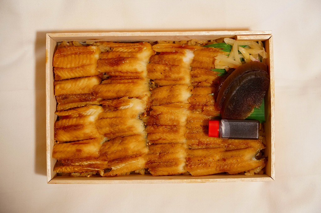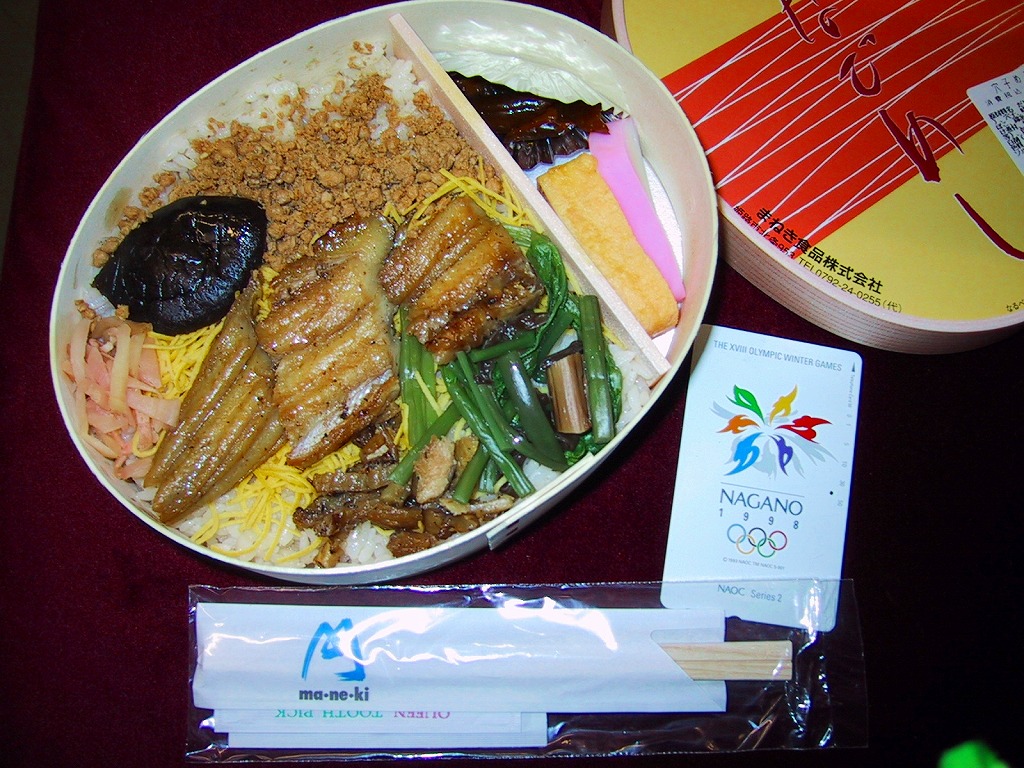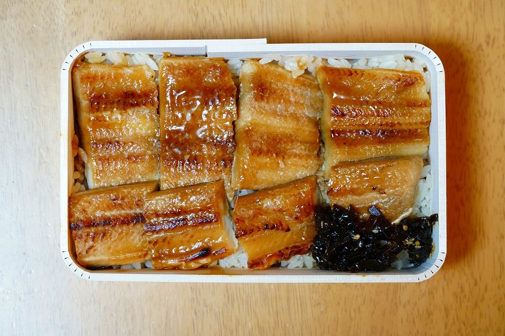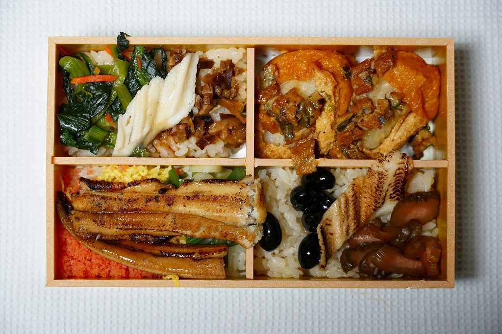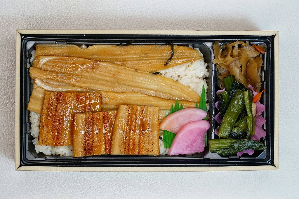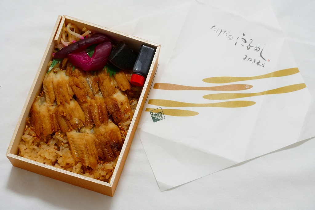 2014(平成26)年1月の京王百貨店の駅弁大会と阪神百貨店の駅弁大会でデビューか。上げ底を加えて高さのある容器に、だし飯を詰め、煮アナゴを載せ、その上にまただし飯を詰め、焼アナゴと山菜と漬物を載せる。アナゴの量は面積で、上層で2/3、中層で1/3程度と多くはないが、アナゴを刻んだり焼いたり煮たりしていて、それらの味の変化を楽しめた。価格は2014年の購入時で1,200円、2017年時点で1,240円。2019年までに終売か。