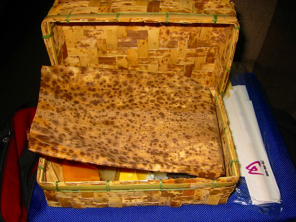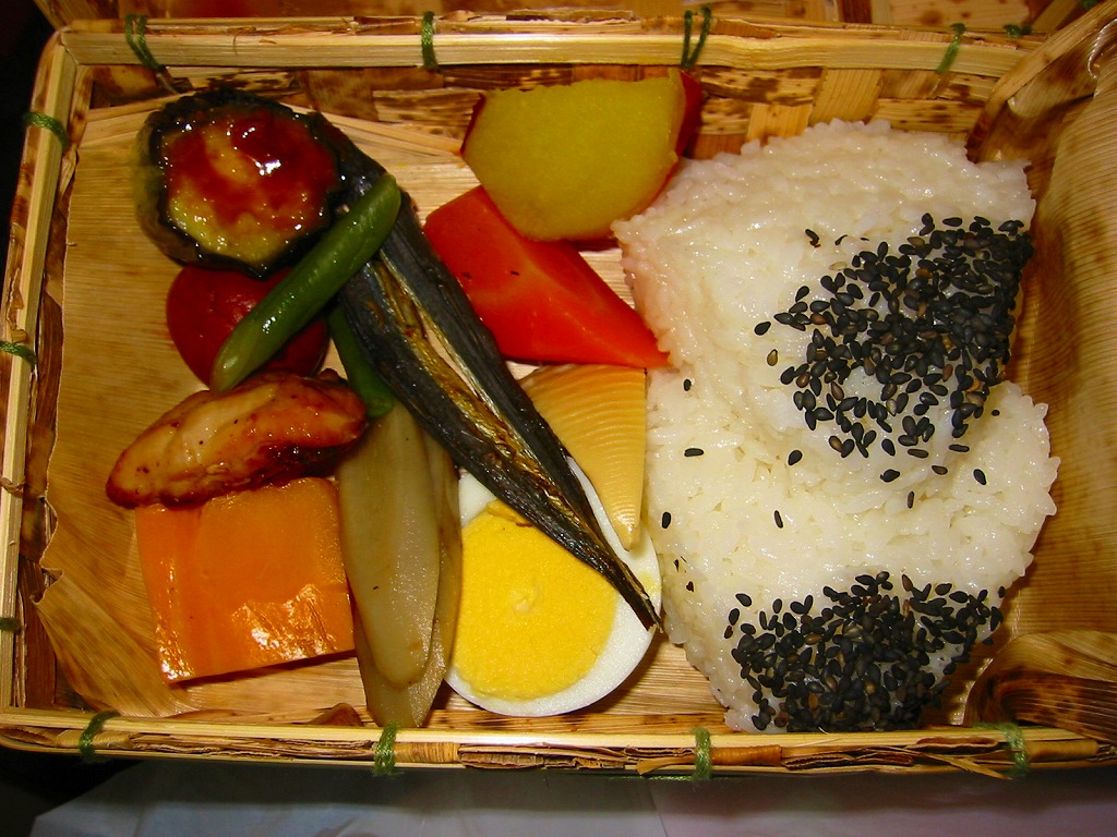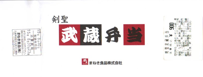 NHK大河ドラマ「武蔵MUSASHI」の放映を記念して、2002(平成14)年11月30日に発売。2001年発売の「21世紀出陣弁当」から各地の駅弁で使われ始めた竹籠容器を使用、さらに笹の葉を敷いて雰囲気を出して、中身は白飯黒胡麻の三角おにぎりがふたつと、月見玉子に焼き鳥に煮物の数々、そしてメザシを二本刺して武蔵の二刀流を表現。価格の割に中身が少ないような気はするが、雰囲気が良く売れそうな駅弁。現在は売られていない模様。