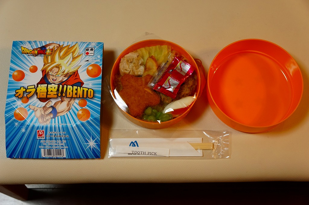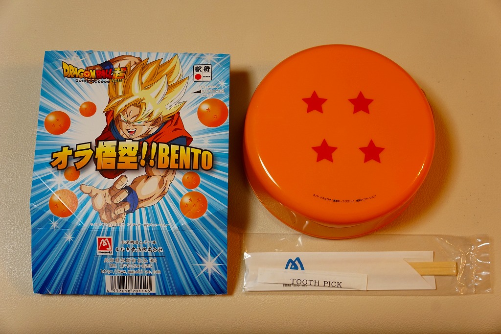 2016(平成28)年1月の京王百貨店の駅弁大会でデビューか。世界中で人気の漫画作品でテレビアニメ「ドラゴンボール」の駅弁で、悟空とはその主人公である孫悟空のことで、「オラ悟空」はテレビの次回予告時の冒頭句。パッケージには駅弁の発売時点での最新作である、2015(平成27)年7月放送開始の「ドラゴンボール超(スーパー)」のロゴマークと、その前作である「ドラゴンボール改」での姿をした主人公が描かれる。