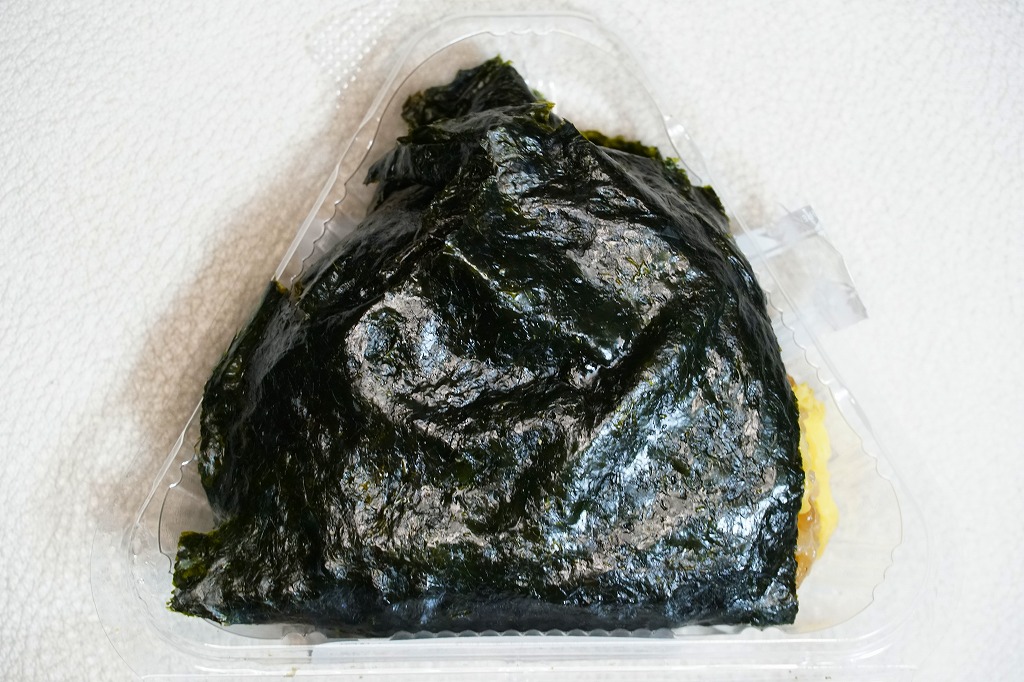 袋の絵柄はひっぱりだこ飯の掛紙から引用し、本物の見本写真も掲載。玉子と穴子入り炊込み飯に、たこの甘醤油煮を貼り、海苔で巻いたものを1個袋詰め。おにぎり1個という制約の中、御飯の味や全体の雰囲気を、かなり再現できていたのではないかと思う。タコ飯のおにぎりがコンビニで売られることは稀だと思うので、その点でも面白い商品だった。