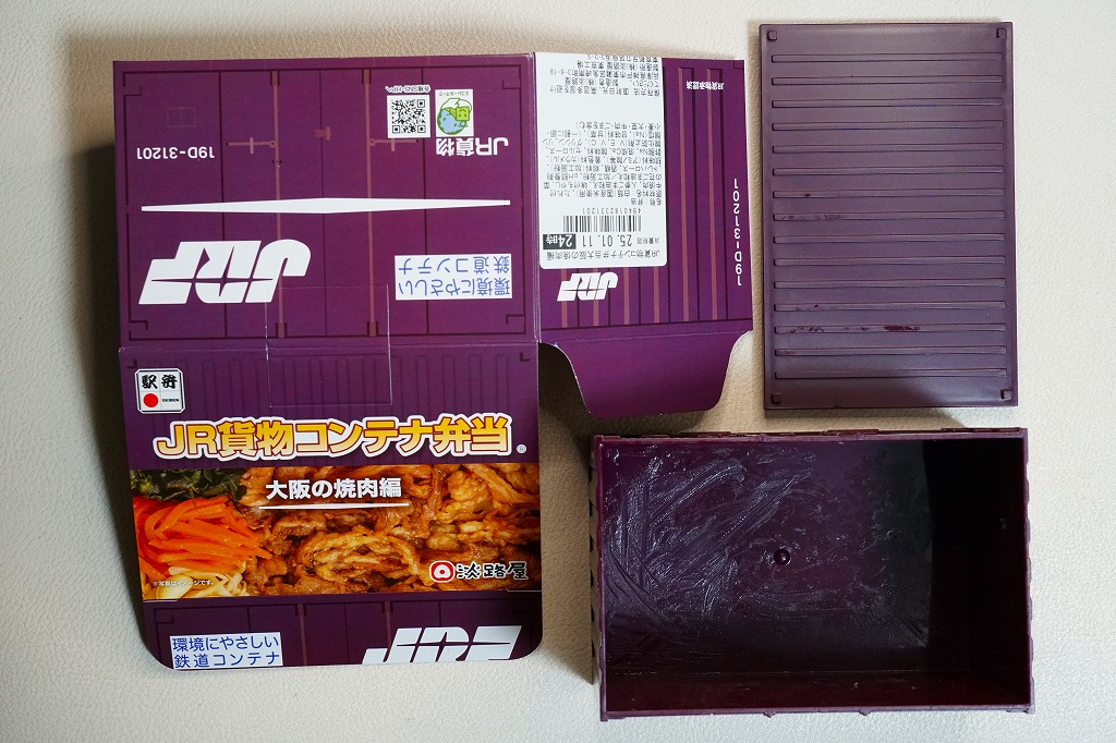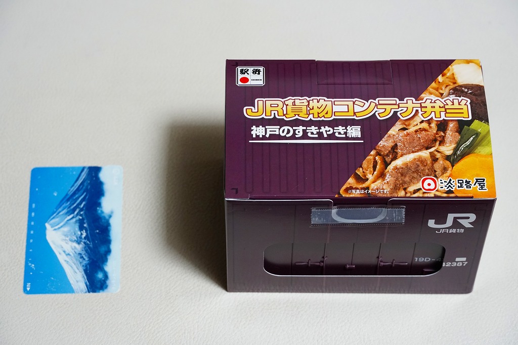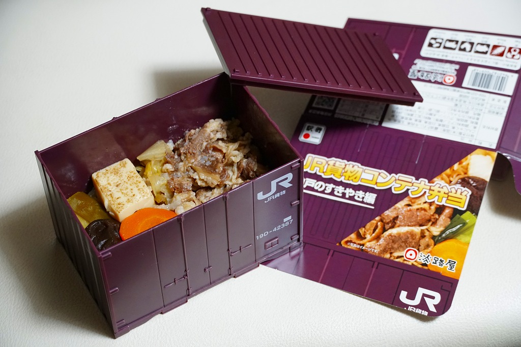 2022(令和4)年1月1日に発売。鉄道貨物の駅弁は史上初かもしれない。実在するJR貨物の鉄道貨物輸送向けコンテナ「19D−42387」の形状と塗装を模したプラ容器を、同じ絵柄の紙箱にぴったり収める。JR貨物承認済の商品で、ふたを開けると全国地図を用いたJR貨物の鉄道貨物輸送の紹介が現れる。中身は「神戸のすきやき編」ということで、味付き飯を牛すき焼きで覆う、常温向け洋食風な、いつもの神戸駅弁の内容と風味。