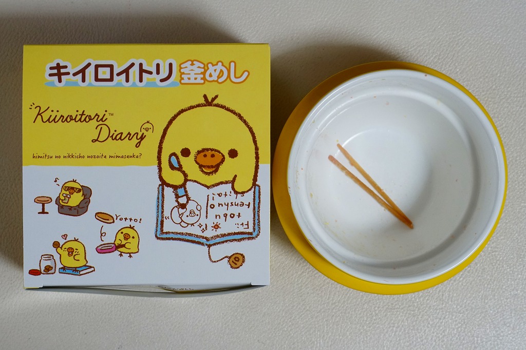 2024(令和6)年4月1日に、新神戸駅や西明石駅などの調製元店舗と通信販売で発売。「リラックマだららん釜めし」以来、約8年ぶりに発売するリラックマコラボ釜めしとする。サンエックスのキャラクター「リラックマ」で、カオルさんがリラックマが来るよりも前に家で飼っているペットの鳥「キイロイトリ」が、釜飯タイプの駅弁になった。陶製の容器も、プラ製のふたも、これを収める紙箱も、すべて黄色い。この容器に炊込飯を詰め、錦糸卵と桜でんぶで覆い、キイロイトリ型のかまぼこ、三色かまぼこ2本、くり、さつまいも、ぎんなんで覆う。鶏肉は入らない。内容量は少なめ。おかずの手掛かりがなく甘い弁当を、食べ物でなくキャラクターの世界観で味わう。