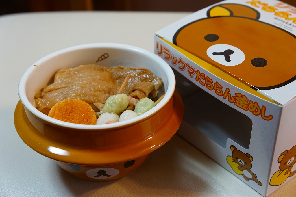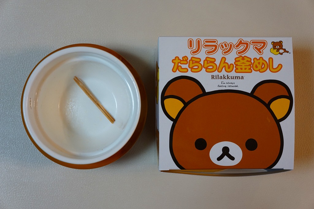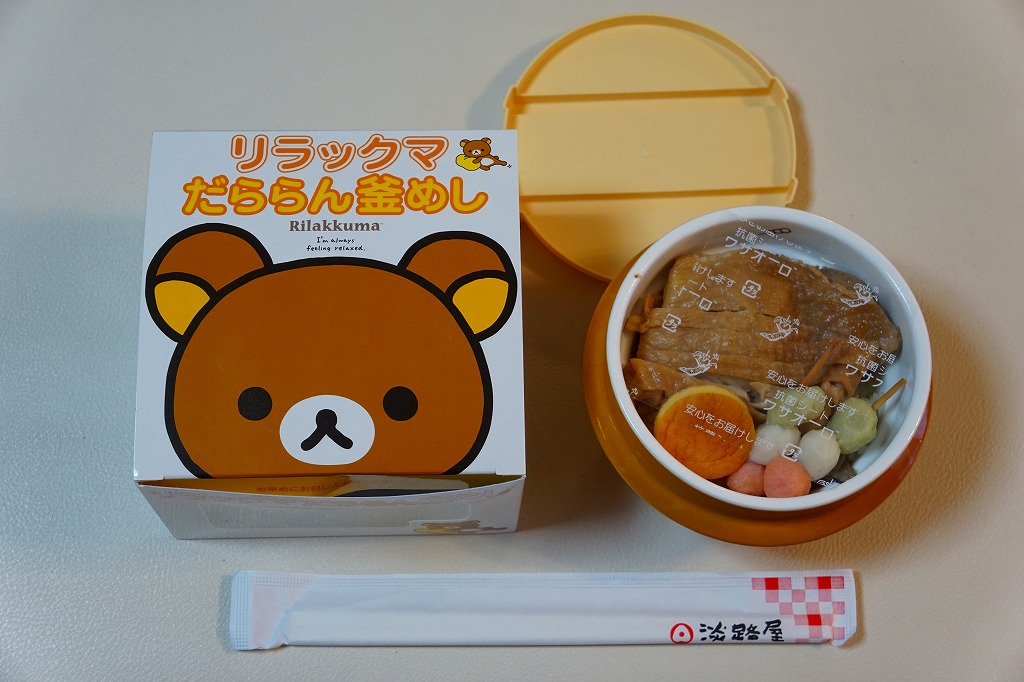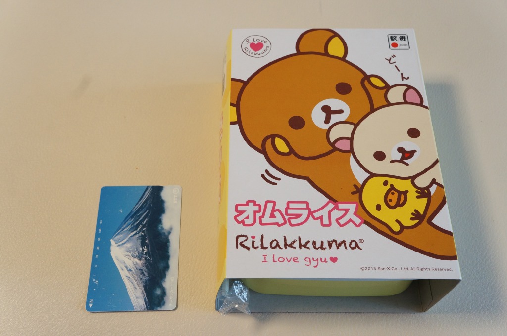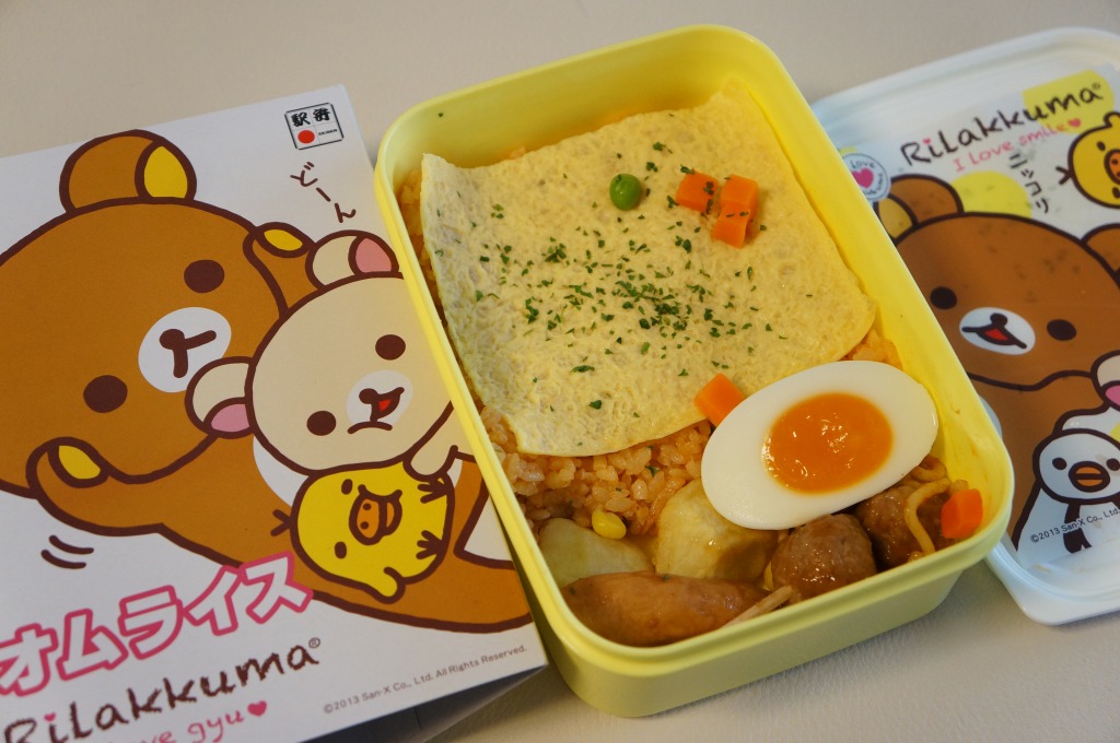 商品名は「リラックマオムライス」とも。2013(平成25)年10月26日に、調製元のプレスリリースによると「全国初、リラックマ駅弁」として発売。ただ、狭義の駅弁ではないとはいえ、東京都内で5年前に「リラックマのお手作りバーガー」が出ている。