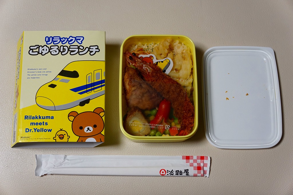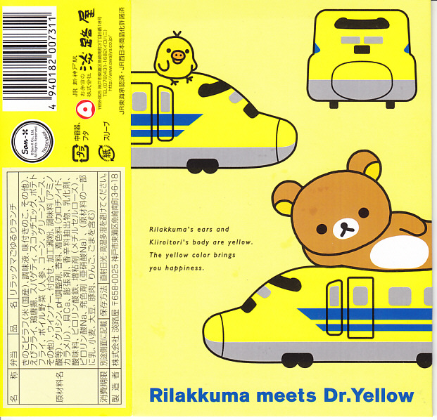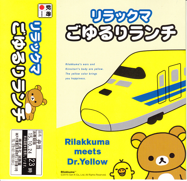 2015(平成27)年8月8日発売の、新神戸駅のリラックマ駅弁の第2弾あるいはリニューアル品。今回はドクターイエローとのタイアップで、JR東海の承認とJR西日本の許諾を取り、923形新幹線電気軌道総合試験車の先頭イラストを、リラックマより大きな存在感で、パッケージと弁当箱と中身のフィルムに描く。