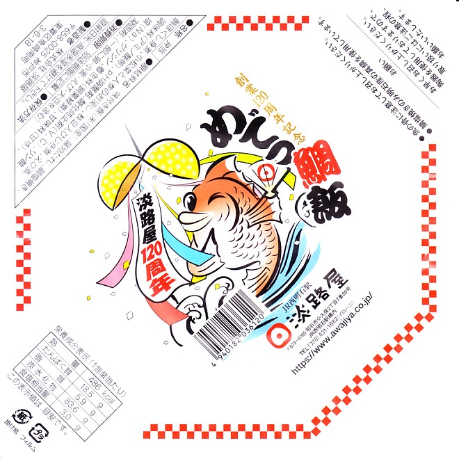 調製元の創業120周年を記念して、2023(令和5)年1月5日に、新神戸駅など調製元の各店とネット通販で発売。名前も容器も内容も、四半世紀前の西明石駅弁「めでっ鯛飯」の再来に思えるが、そのような案内や振返りはされていない。鯛の形状が愛らしいという陶器に、120周年を祝う鯛の絵柄の掛紙をかける。これに醤油飯を詰め、鯛のほぐし身煮を敷き、鯛塩焼き、えび煮、ひじき煮、小松菜と人参のお浸しなどを載せる。中身はタコをタイに置き換えた「ひっぱりだこ飯」のよう。数量限定での販売といい、この1月で終売か。4月10日の駅弁の日に各店とネット通販で「再販」された。