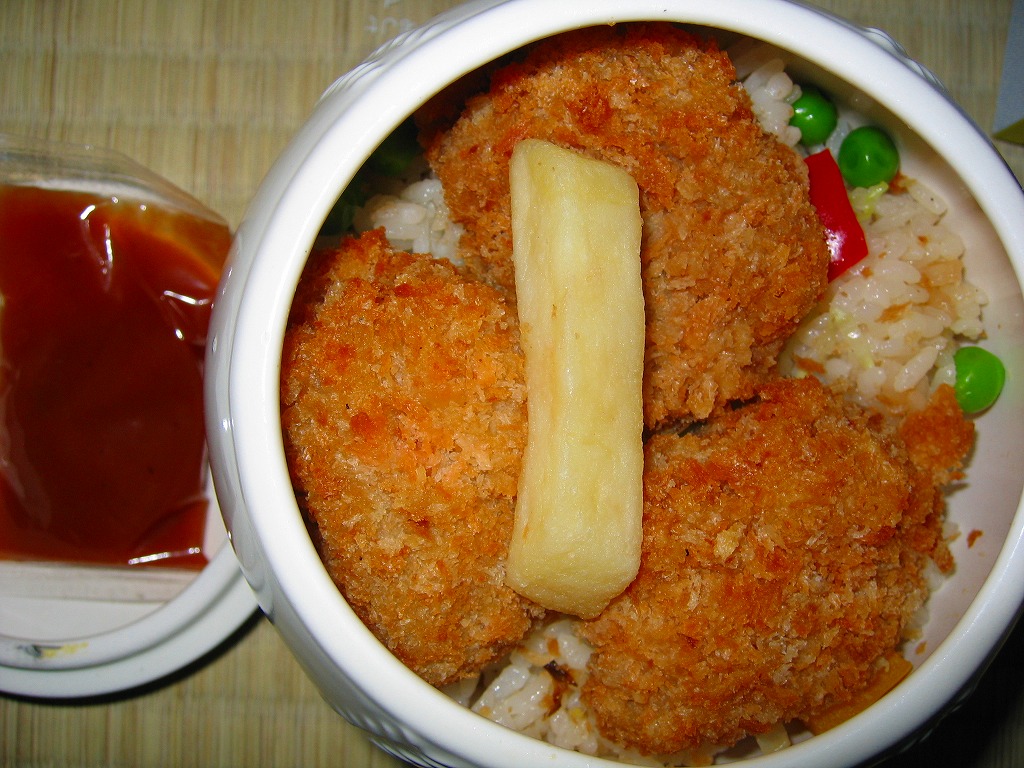 飯に玉子を貼り付けただけで「オムライス」と呼べるのかな、とか、冷蔵で食べる内容ではないな、と感じた。しかし、タッパー状の弁当箱は、これ単独で雑貨屋やホームセンターで販売されていてもおかしくないくらいのレベルでできており、これはぜひ弁当箱として活用すべき。価格は2013年の購入時で1,050円、2014年4月の消費税率改定で1,080円。2015年までの販売か。