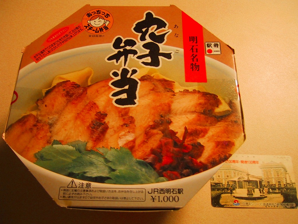 神戸の他の加熱機能付き容器駅弁でお馴染みの、八角形のパッケージに円形の容器を入れるが、そのパッケージはやや簡略化された新バージョンか。中身は白御飯の上に少量の錦糸卵と多量の穴子蒲焼を載せる。そのまま食べるといずれも硬いだけだが、指示通りひもを引いて温めた後につゆをかければ、タレの強くない穴子が口の中で溶けていくはず。