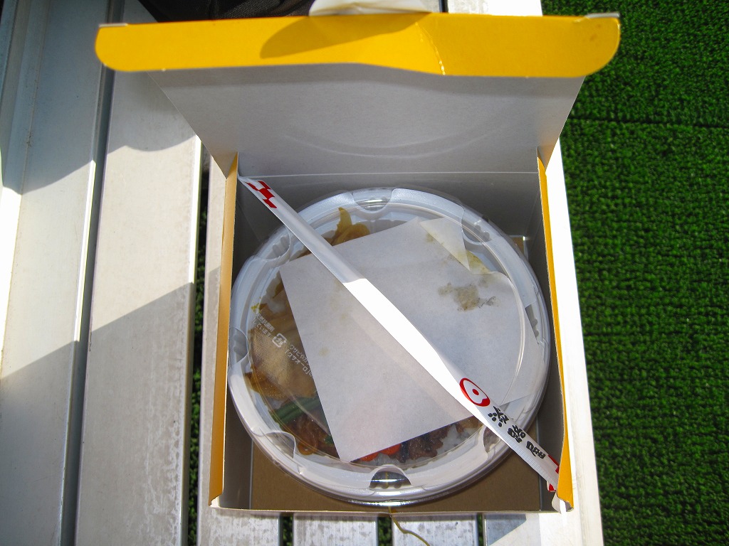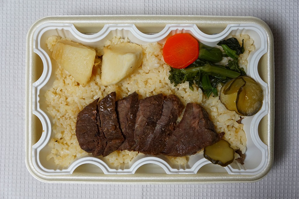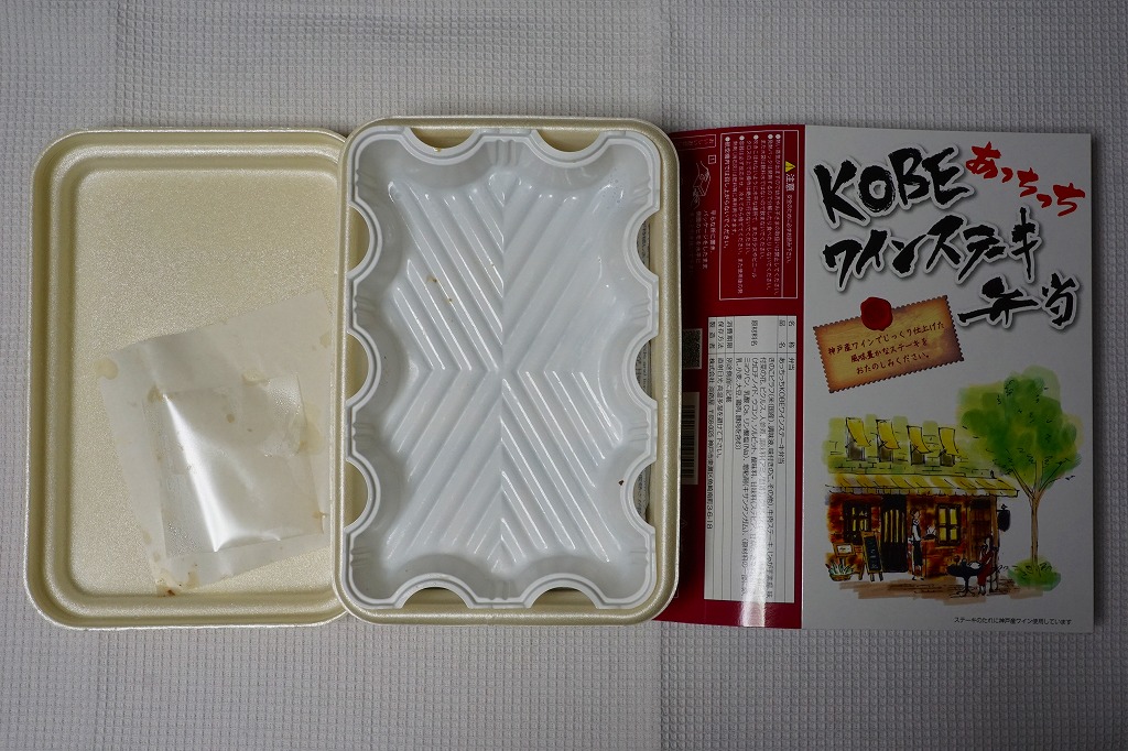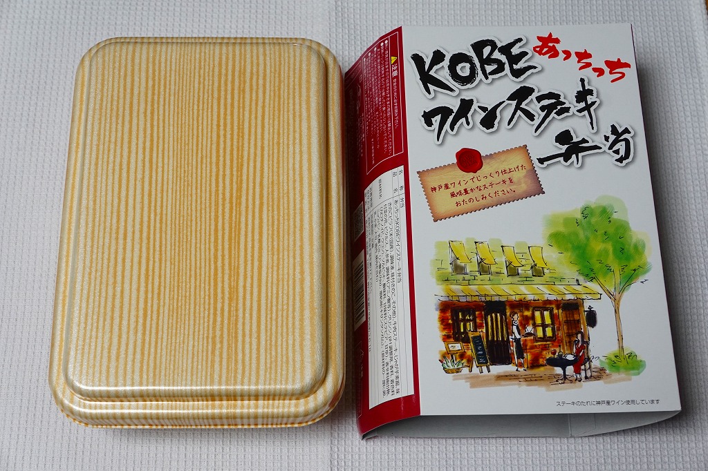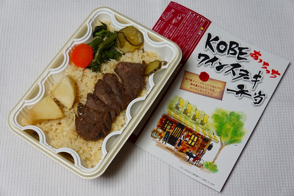 2014(平成26)年7月までに発売か。長方形の加熱機能付き容器にキノコピラフを敷き、牛肉ステーキを横たえ、ジャガイモの素揚げ、菜の花、ピクルス、ニンジンを散らす。まるで佃煮を押し固めたような神戸ワインステーキの肉質は、赤身の実力か、単なる期待外れか。2018年までの販売か。