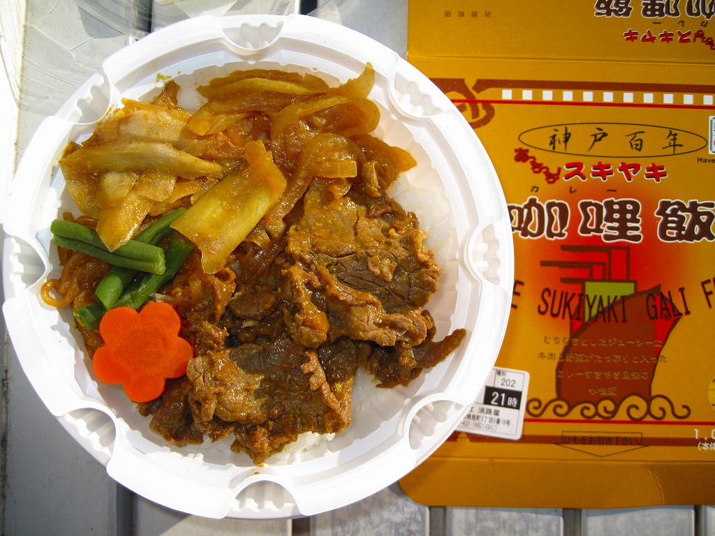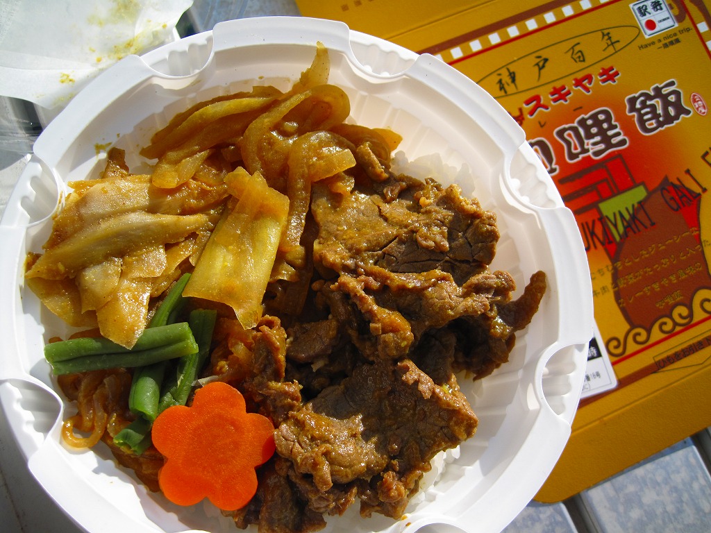 2009(平成21)年2月頃に発売か。円形の加熱機能付き容器を使用、これをカレー色のボール紙のパッケージに収める。中身は白御飯の上をカレー色に染まってカレー味のする牛肉煮、タマネギ煮、ごぼう煮、糸こんにゃくで覆い、いんげんとニンジンを添えるもの。これは調製元の得意料理に見えて、牛肉がザラザラしてとにかく固くてスジだらけであり、昔の安くて不味いカレーライスを思い起こさせるもの。ルーがあまり辛くなかったのは個人的には嬉しかったが、これも味としてはマイナスかもしれない。神戸の駅弁には珍しい駄作に感じた。なお、カレー飯の「カ」は、くちへんに加わるという文字を書く。現在は販売されていない模様。