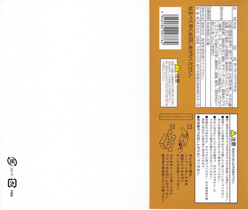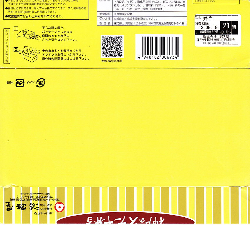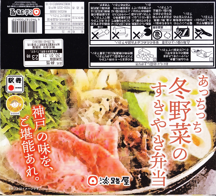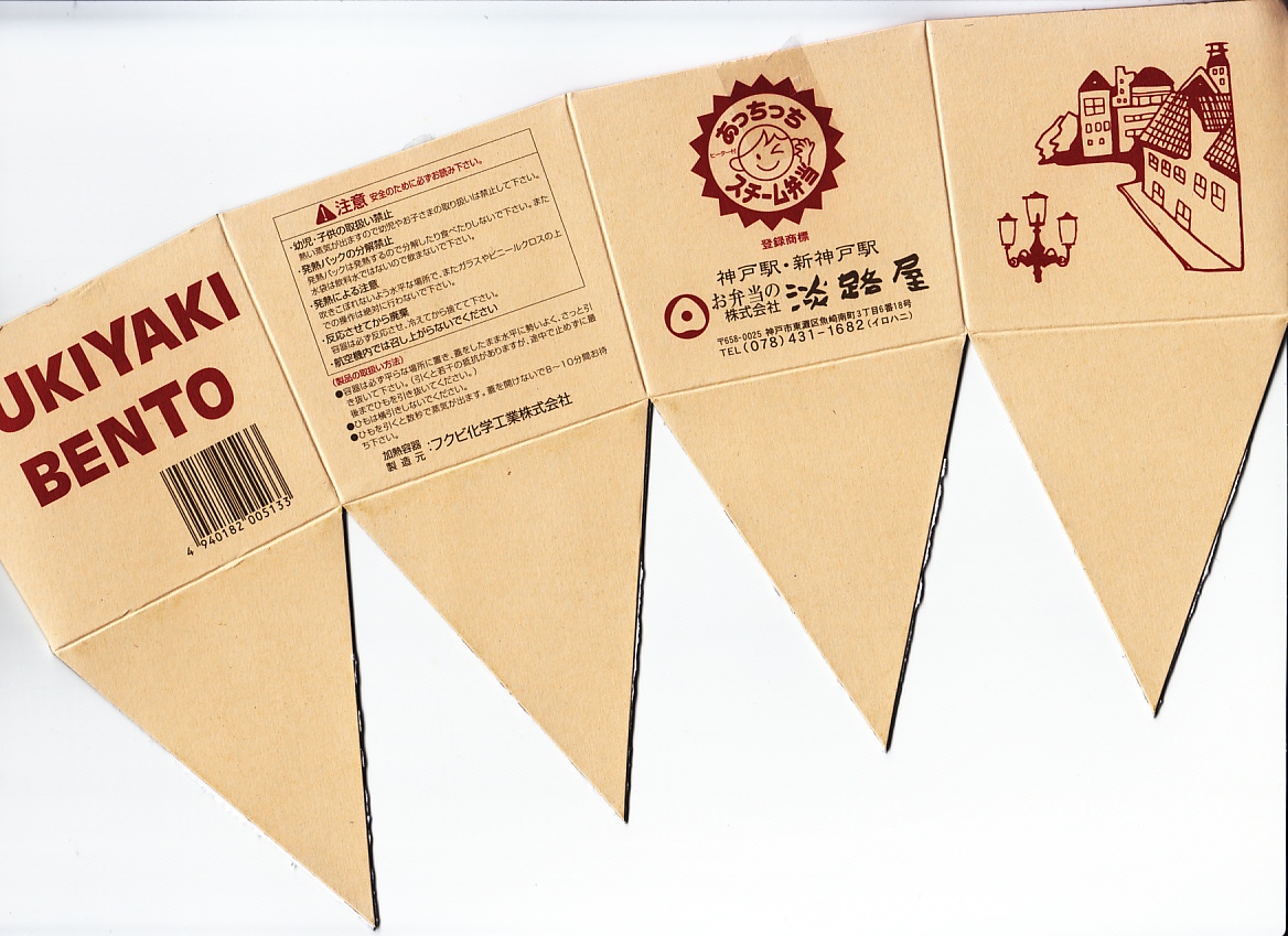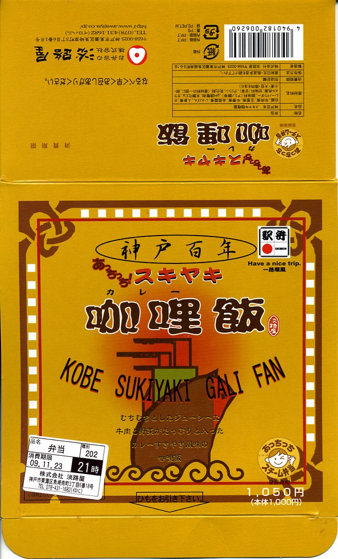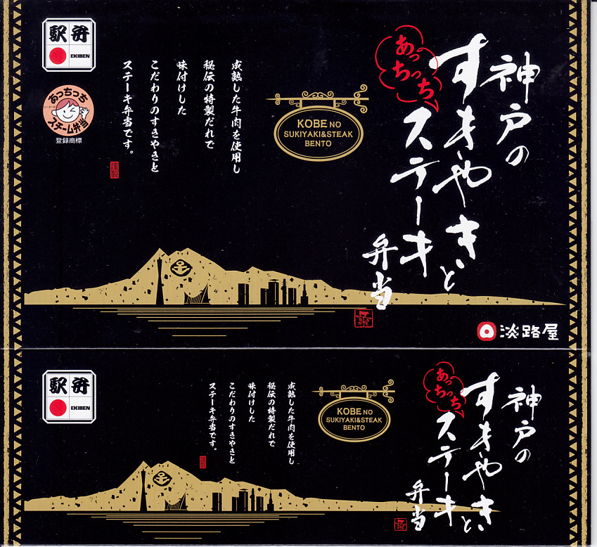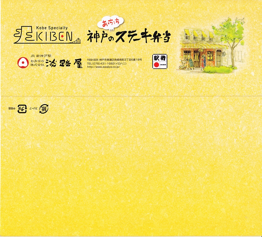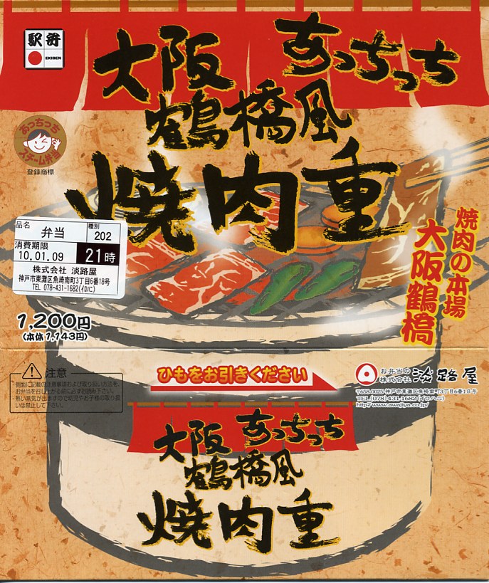 調製元は神戸エリアの駅弁屋である淡路屋であるが、この駅弁は新大阪駅弁とも天王寺駅弁ともされるし、もちろん大阪も鶴橋も兵庫県や神戸市ではない。最近は神戸の駅弁をJRの子会社が大阪市内の駅構内の売店で取り扱うようになってきており、従来のエリア分けが通用しなくなった感じ。ここではとりあえず神戸の駅弁としておく。現在は販売されていない模様。