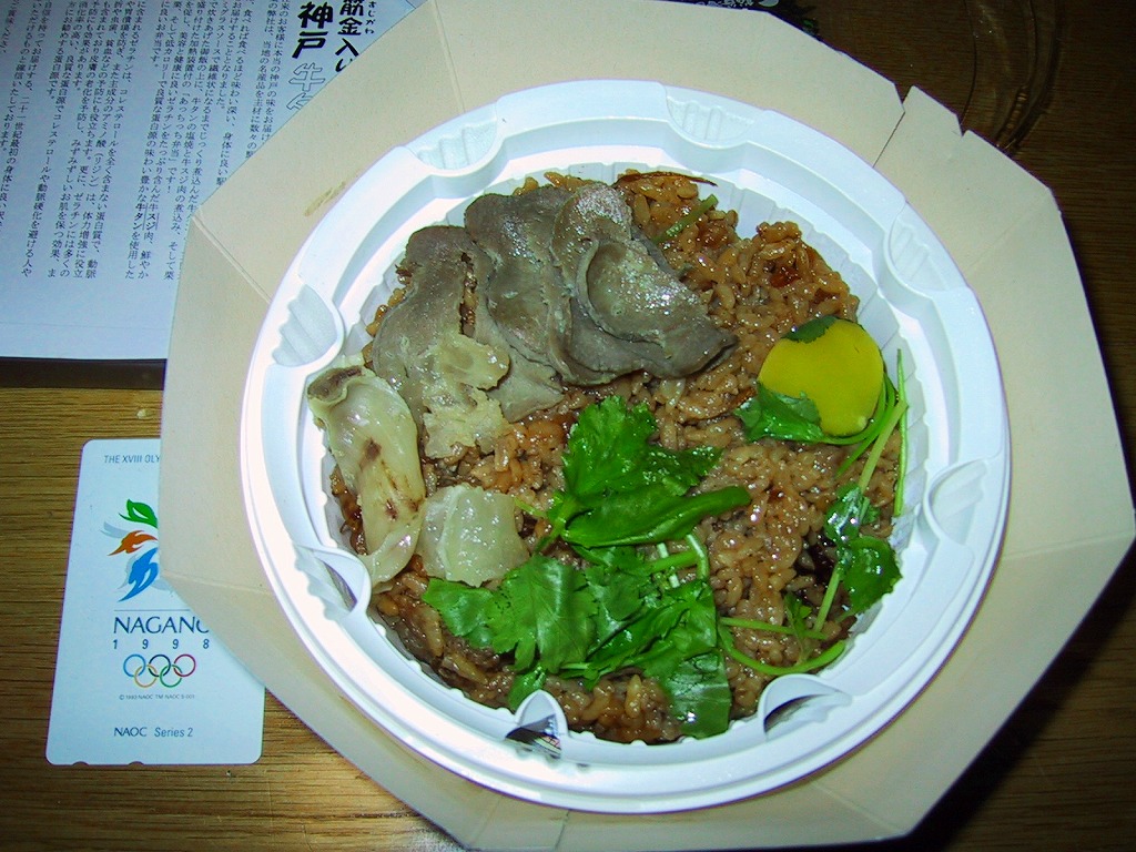 二重容器に発熱剤入りなので容器の大きさに対して量は少なく、特に牛タンが少ないのではと感じるが、ゼラチンの塊になるまで煮込んだ牛スジに、甘すぎず辛すぎない御飯などの味がそれをカバーする。現在は販売されていない模様。