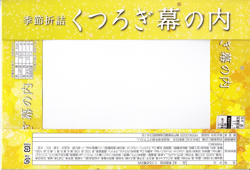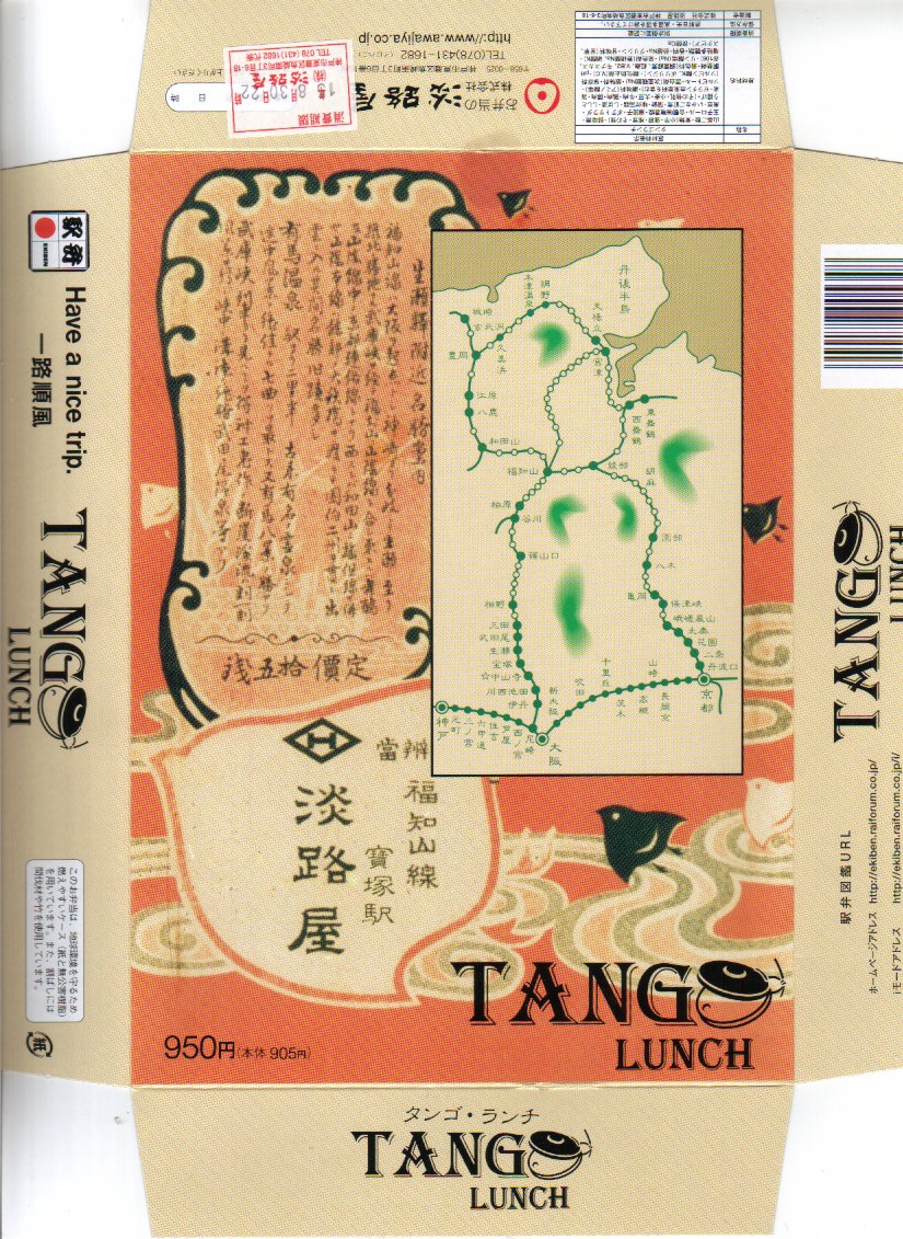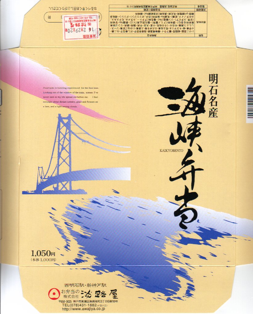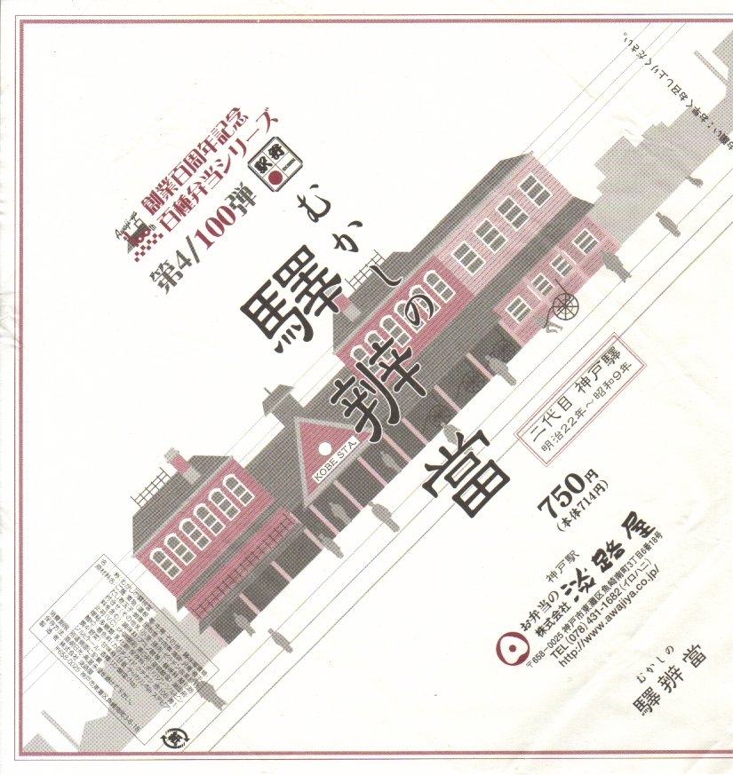 淡路屋創業百周年記念百種弁当シリーズの第4弾とある。このキャンペーンの情報は公式サイトにもないため詳細は不明だが、おそらく幕の内弁当の掛紙を百種作り順次置き換えているものと思われる。