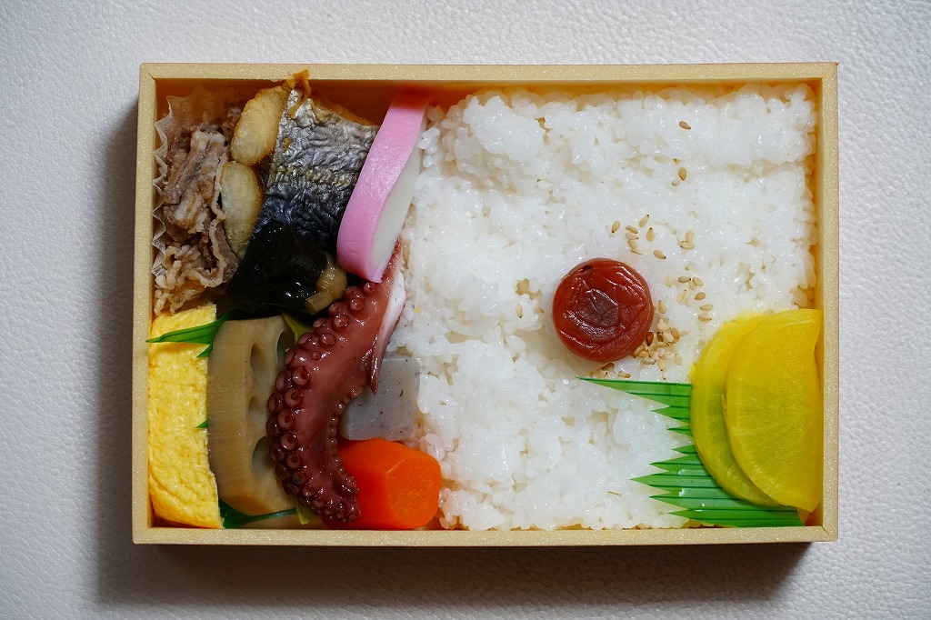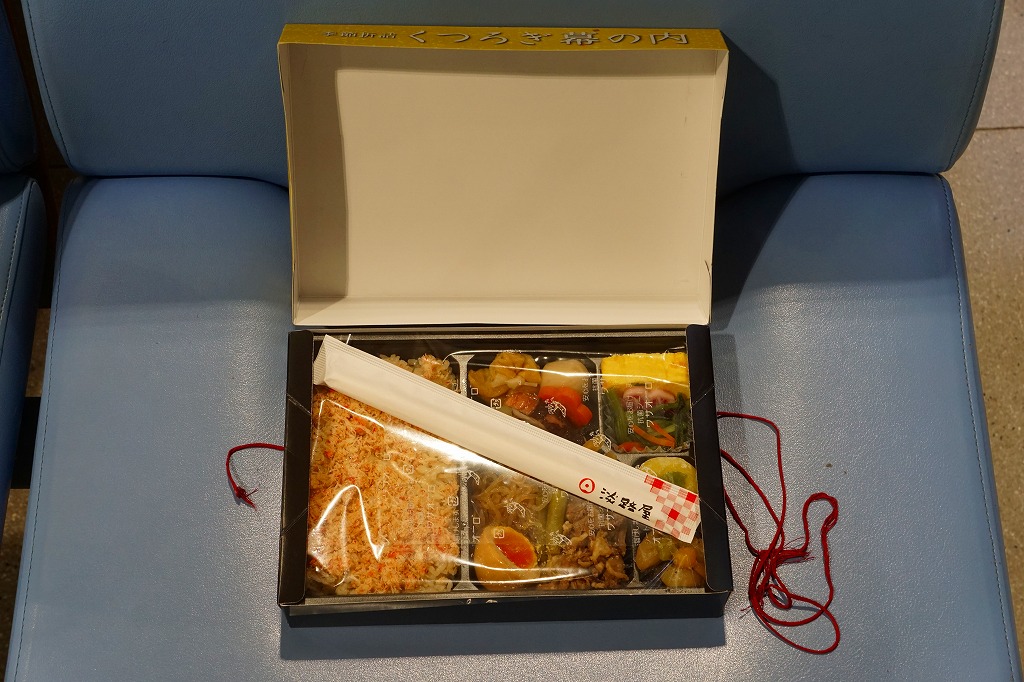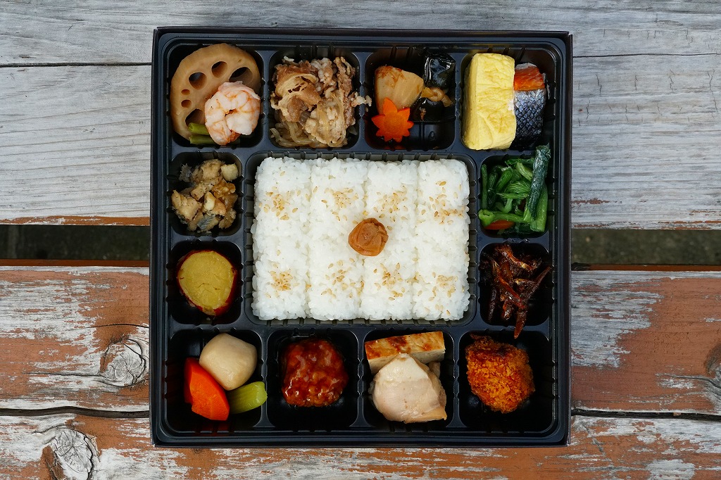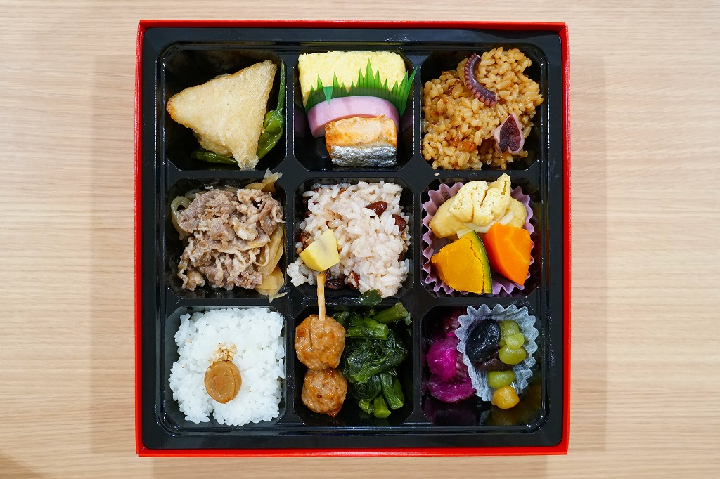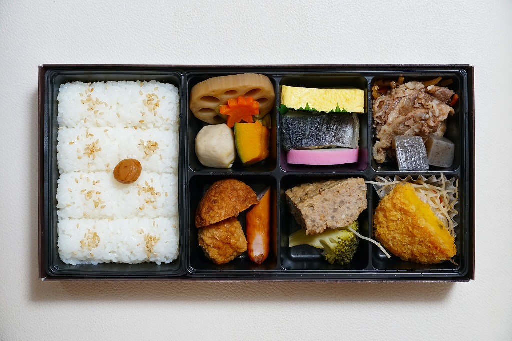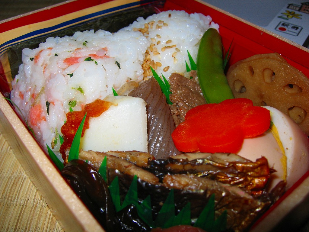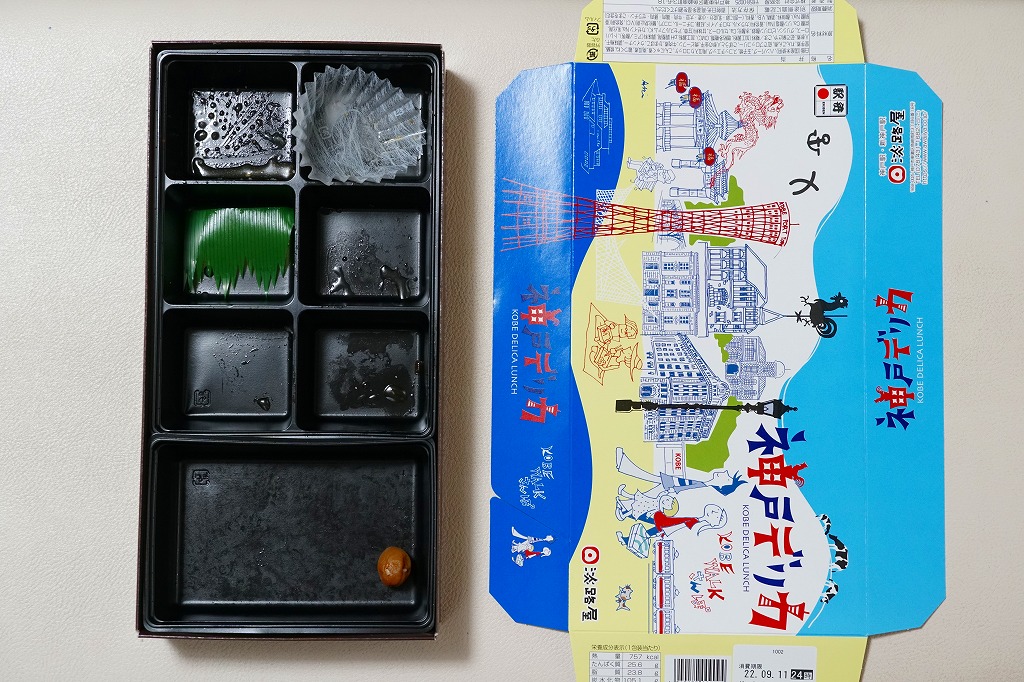 1990年代の発売か。正方形の容器にかかるふたには神戸の名所が描かれ、2021(令和3)年11月からは「神戸名所20巡り」として20種類ものイラストを描き、そのすべてに解説が付いて分かりやすくなった。中身は和洋の幕の内弁当タイプで、中央に日の丸俵飯を据え、その周囲の12区画に玉子焼と焼鮭、昆布巻などの煮物、牛肉煮、海老煮とレンコン煮、刻みアナゴ、さつまいも、サトイモなどの煮物、鶏つくね、鶏肉煮、タコ天、いかなごくぎ煮、小松菜おひたしなどのおかずを配置。おかずが豊富で、ワインよりビールか日本酒が合いそう。価格は2005年時点で1,100円、2014年4月の消費税率改定で1,130円、2022年3月から1,150円。