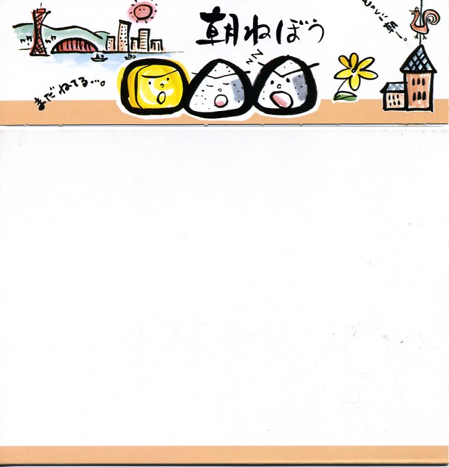 それよりも何よりも、パッケージでおにぎりがあわてた顔で「とっくに朝ー。」「またしても…。」としゃべることに、とても身につまされる思いがして、これが印象に残る。商品ストーリーに遊び心がいっぱいな、朝食用駅弁。現在は販売されていない模様。