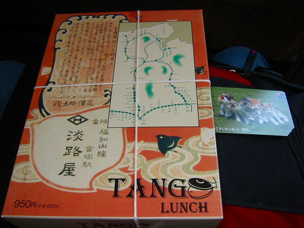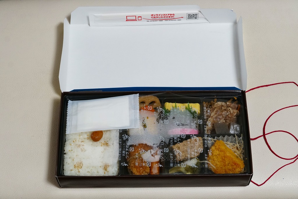 洋風な名前で実は純和風の駅弁。経木枠の長方形の容器に、戦前の駅弁の掛紙を転写した紙のふたをかけて麻ひもでしばる。丹後地方の郷土料理を詰めたという中身は、真ん中に笹を載せた山菜御飯が入り、周囲を煮物や鮭塩焼や玉子ロールや合鴨味噌漬焼や揚団子やポテトサラダなど、書き列べるとやはり洋風な気もする具で囲む。現在は販売されていない模様。