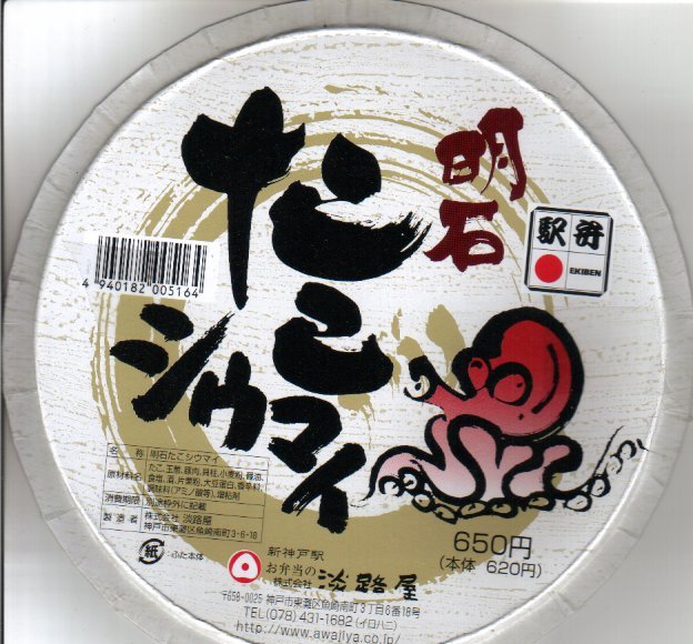 円柱形のボール紙製立体容器の中にタコ入り焼売を8個入れるだけ。その外観がとてもユニークで、円周上に配置した7個はシウマイの上にたこ焼きサイズのタコを載せ、真ん中の1個はイイダコをまるごと頭(本当は胴体)からシウマイに突っ込ませて上に足を広げている。味は関東人にとって非常に脂っこい。ふたに「650円(本体620円)」と書籍のように本体価格が書かれるのもユニーク。