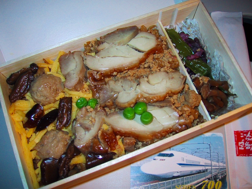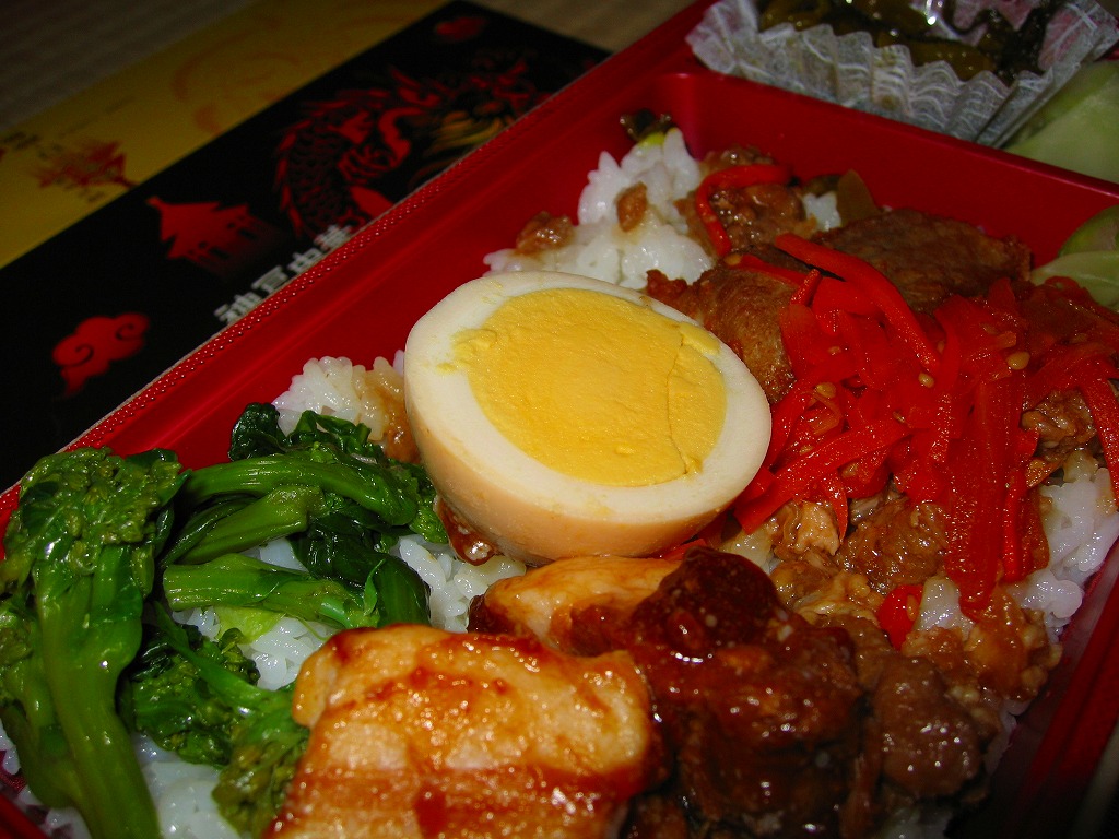 2006(平成18)年の初頭に発売か。他駅の駅弁でもよく見かける、トレー接着の容器に透明なふたをかけ、中華っぽい色づかいの紙枠にはめる。中身は白御飯にルーローやトンポーローつまり焼豚と煮玉子やチンゲンサイなどを載せ、ザーサイと高菜炒めを添える。コンセプトと気合いは分かるが、見栄えも含め弁当としては今一歩の出来。あるいは同年6月時点で公式サイトに掲載がなく、容器への駅名の記載もないので、空弁か街弁向け、あるいは市場調査目的での駅弁大会への投入商品か。現在は販売されていない模様。