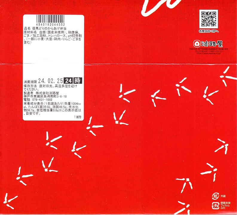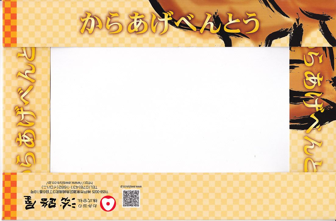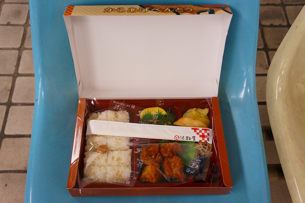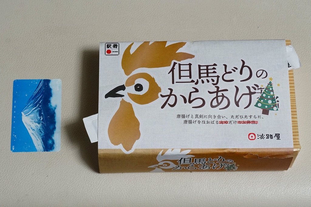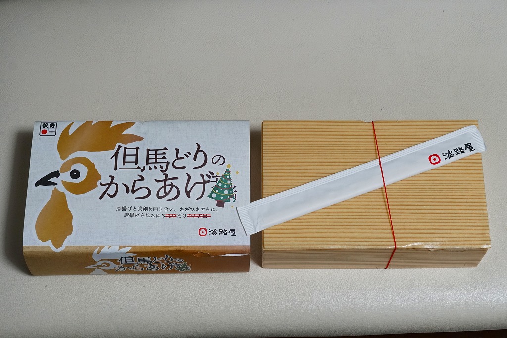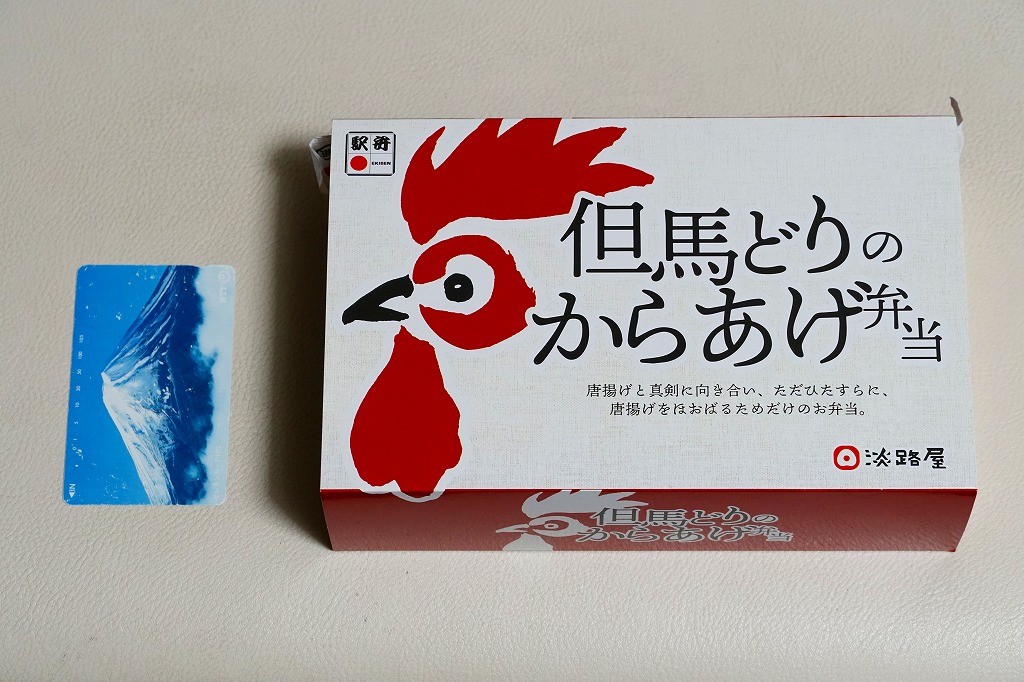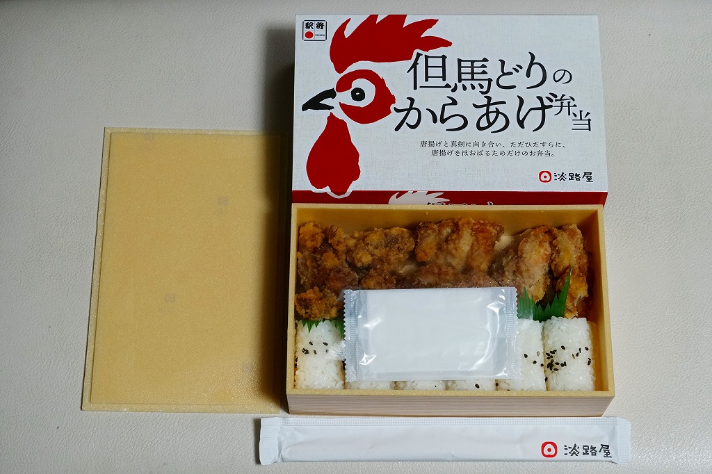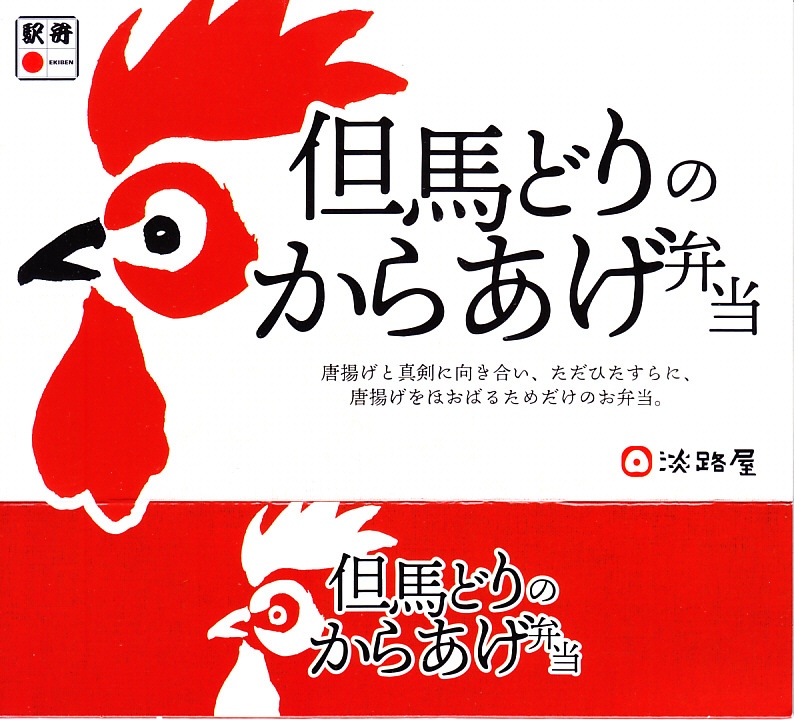 2020(令和2)年の8月に発売。従前の「からあげべんとう」のリニューアルか。ニワトリの頭と足跡と赤色でデザインしたスリーブに収めた、長方形の容器に俵飯を並べ、但馬どりの兵庫県産鶏肉を特製濃厚漬けダレに浸したという鶏唐揚を詰められるだけ詰めて、長いバランで仕切る。「唐揚げと真剣に向き合い、ただひたすらに、唐揚げをほおばるためだけのお弁当。」を名乗るとおり、原材料名が白飯、鶏唐揚、ごまの3品だけで済んでいる、漬物も醤油も何も添付しない、まったく無駄もスキもない鶏唐揚弁当。神戸あるいは京阪神では駅弁売店で様々な駅弁を選べるので、そんな中での唐揚弁当であればこんなシンプルな内容があってよい。価格は2020年の発売時で950円、2023年時点で980円、2024年時点で1,200円、2025年時点で1,250円。