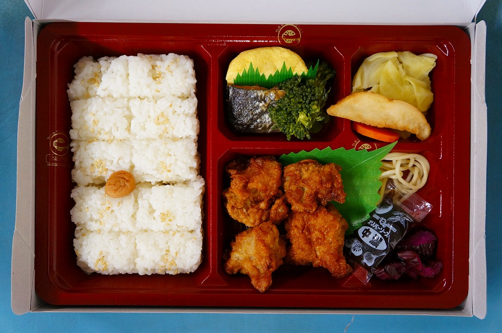 2012年か2013年に発売か。小粒に刻んだ日の丸俵飯に鶏唐揚4個、焼鮭、玉子焼、フライドポテト、煮キャベツ、ブロッコリー、スパゲティ、柴漬けなどを添える。からあげべんとうと考えると鶏の固さと少なさに文句が出るが、鶏唐揚入り幕の内駅弁と考えれば廉価で分量十分。それでもやっぱり、鶏唐揚は神戸の駅弁屋の得意料理ではない感じ。
