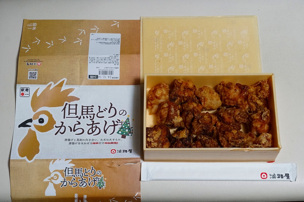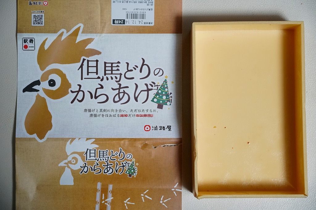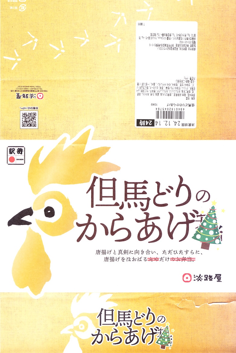 2024(令和6)年12月10日から25日まで、予約限定で直営店舗やオンラインショップで販売。既存の駅弁「但馬どりのからあげ弁当」の、名前から「弁当」を消し、紹介文から「ため」「のお弁当」を消し、中身から白飯とごまを消し、「但馬どりのからあげ」のみを詰めた、クリスマスシーズン限定商品。もともと白飯とごまと鶏唐揚のみを詰めた弁当を、「遂にごはんすらなくなりました。」としてしまった企画商品。このネタはどれくらいウケただろうか。