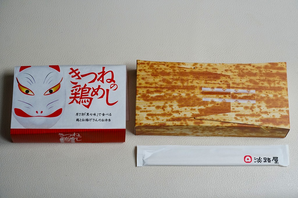 2021(令和3)年5月20日にオンラインストア(インターネット上での通信販売)で発売。政府の新型コロナウイルス感染症対策による影響を受け、自然解凍にも対応した冷凍弁当「どこでも駅弁」として、「ひっぱりだこ飯」「神戸名物すきやき弁当」「きつねの鶏めし」の3種類が誕生した。3個セット販売のみの対応で、「ひっぱりだこ飯」が2,460円、「神戸名物すきやき弁当」が2,400円、「きつねの鶏めし」が2,280円、3種各1個で2,380円。なのでこの「きつねの鶏めし」は、1個あたり760円と計算できる。加えて送料が必要。