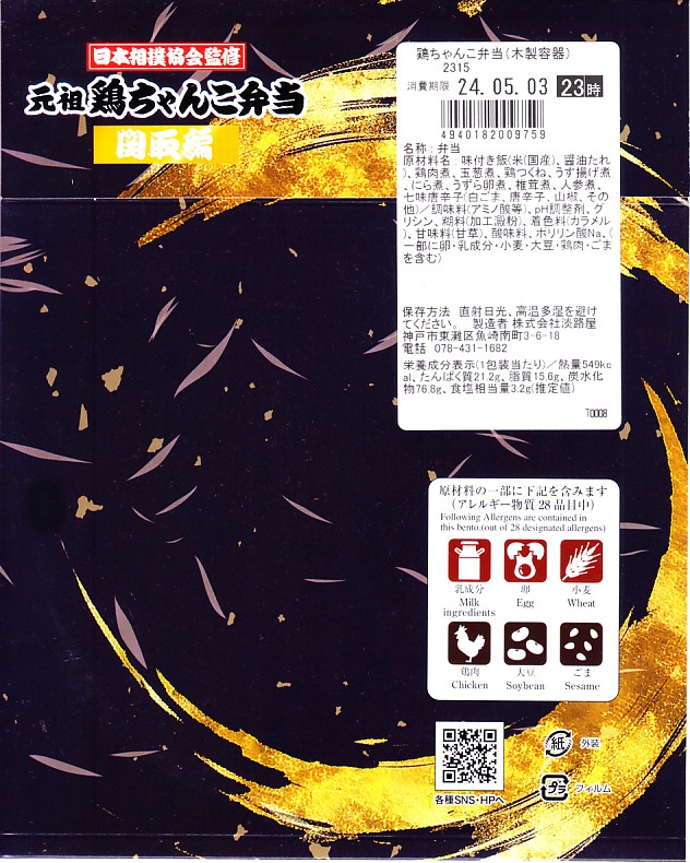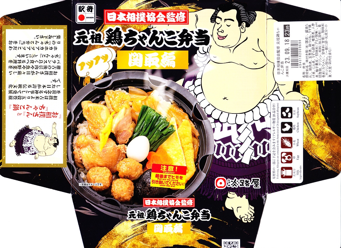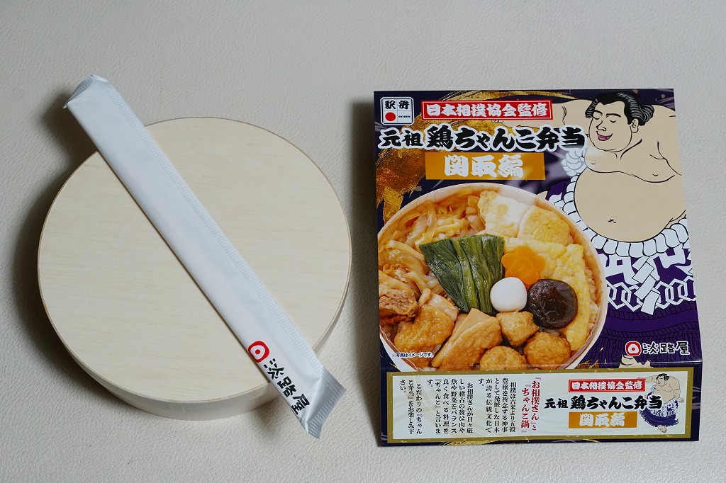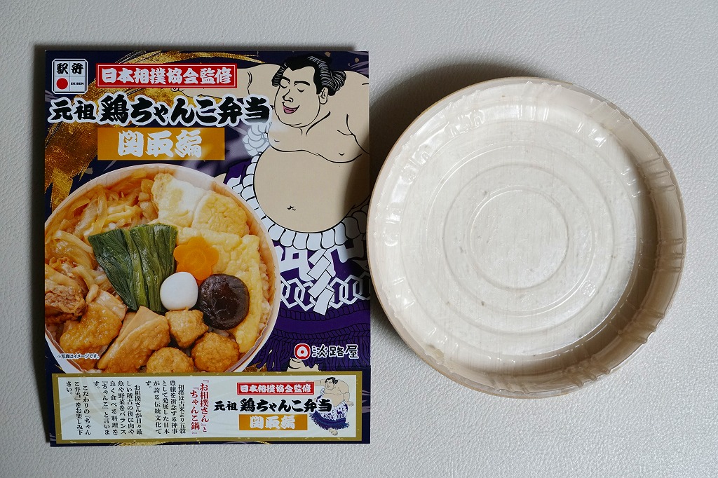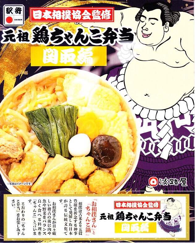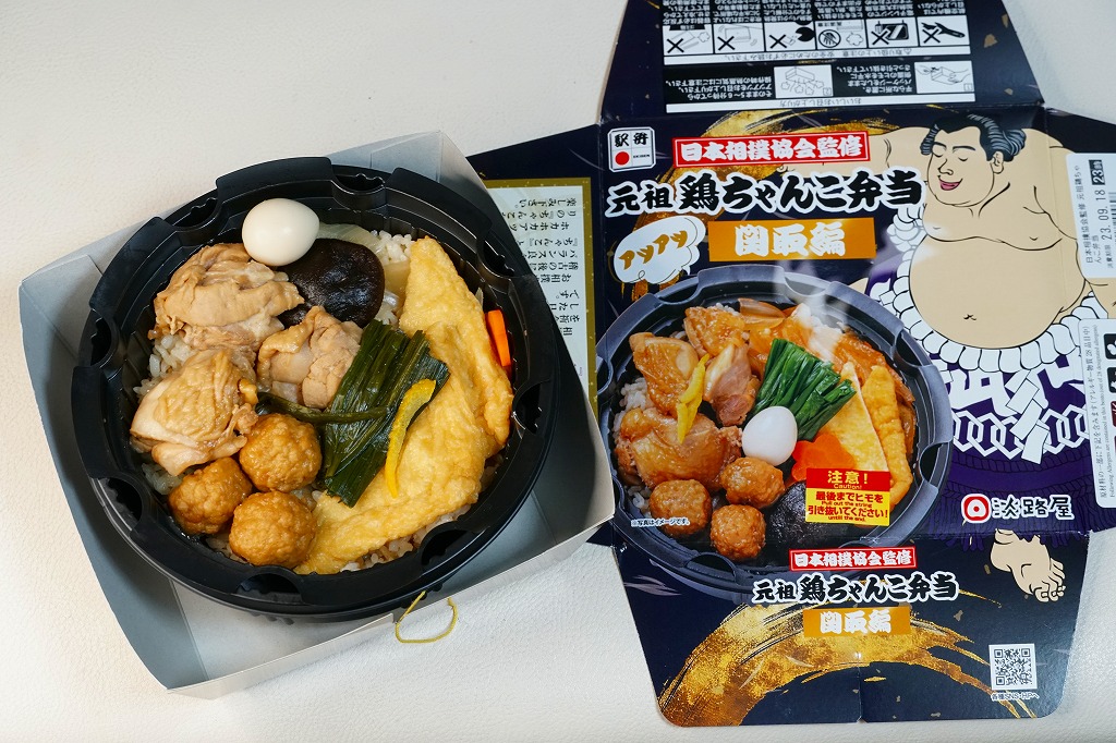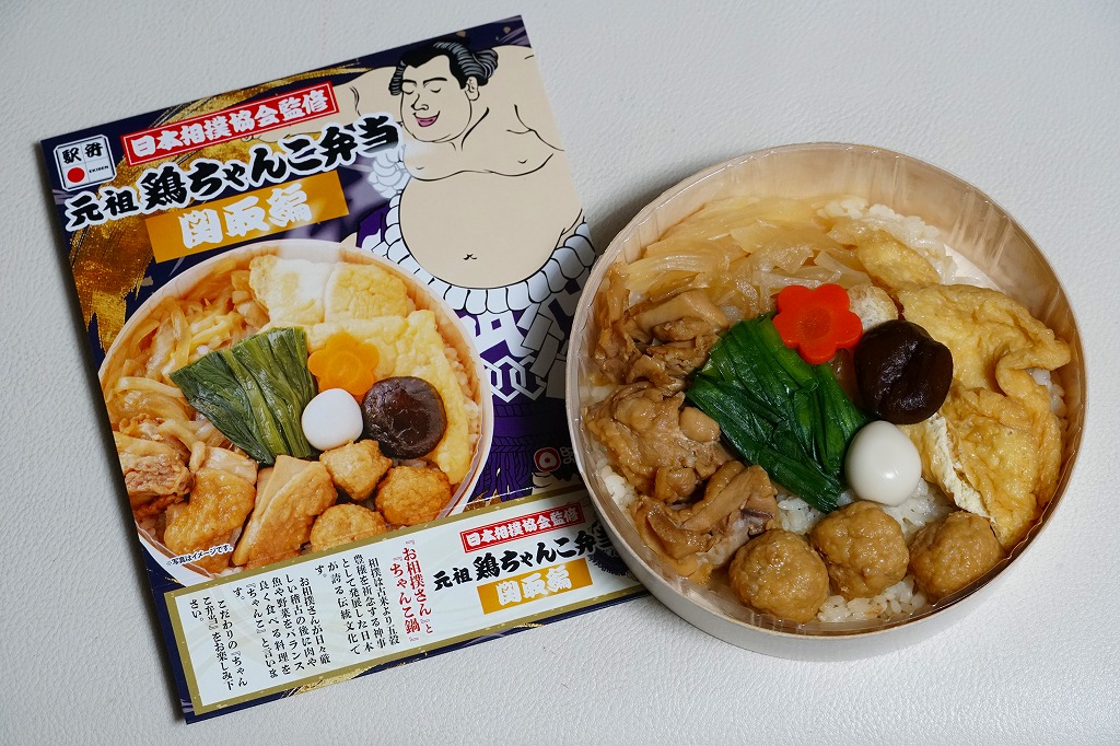 2023(令和5)年9月10日に「元祖牛ちゃんこ弁当」とともに、関西エリアや関東地方の各駅で発売。日本相撲協会とのコラボにより、国技の伝統「大相撲」と日本の伝統食「駅弁」が出会い、これぞ日本!という駅弁が誕生したのだという。こちらは「関取編」を名乗り、古くから勝負事に験を担いで手をつかない鶏肉を使ったとした。