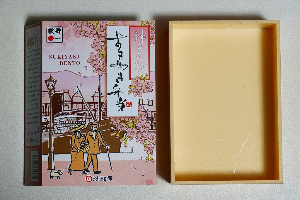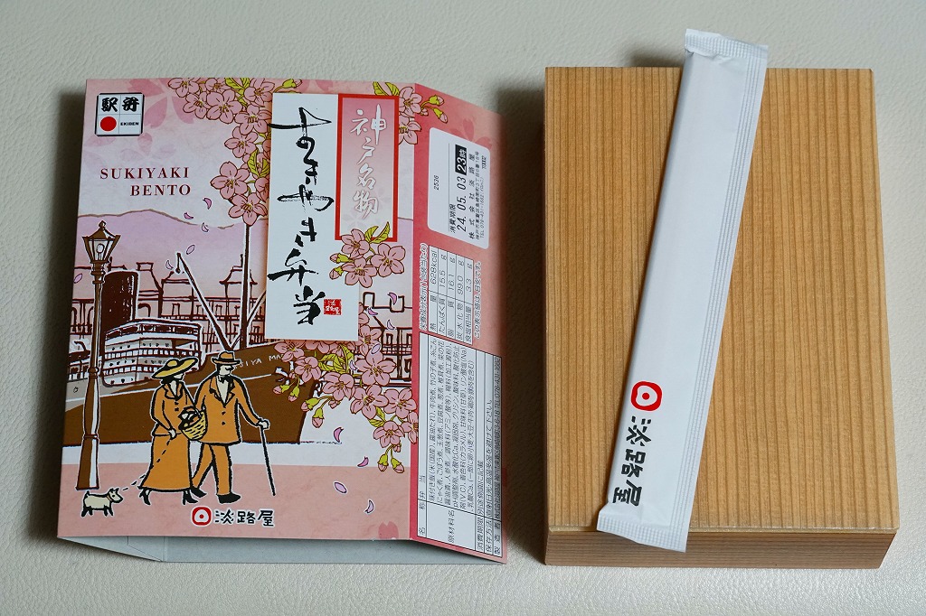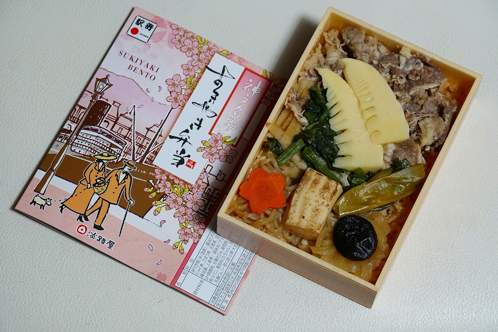 2023(令和5)年3月に発売か。5月のゴールデンウィーク明けまで売られる春駅弁で、2018年発売の「神戸名物すきやき弁当」の春バージョン。容器や中身のつくりはそれと同じで、スリーブは春と桜の色になり、牛すき焼きの具にタケノコ煮と菜の花醤油漬を加えた。引き続き、漬物などの付合せやタレなどの袋を添付しない、すきやきだけのお弁当。