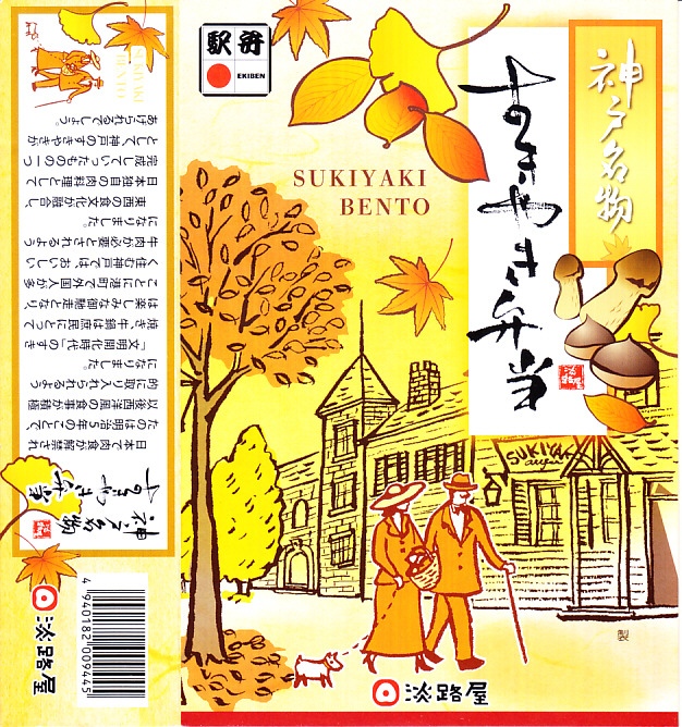 この姿と名前では、2022(令和4)年9月の発売か。駅弁催事での商品名は「秋のすきやき弁当」であり、下記の駅弁「神戸名物すきやき弁当」を四季の駅弁に変えたものだと思われる。スリーブの絵柄と宣伝文は従前を踏襲するが、くり、松茸、紅葉と、秋らしい絵柄を加えた。