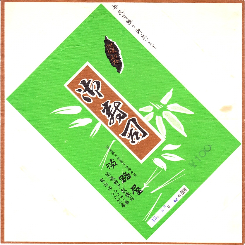 1963(昭和38)年12月23日の調製と思われる、昔の神戸駅弁の掛紙。駅弁に限らず汎用的な絵柄だと思う。