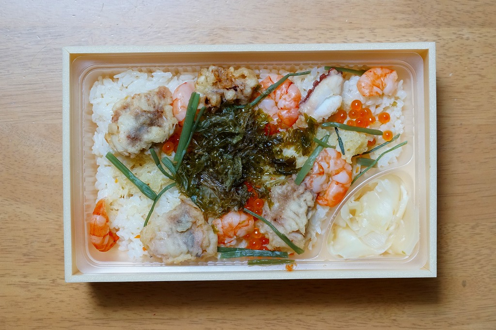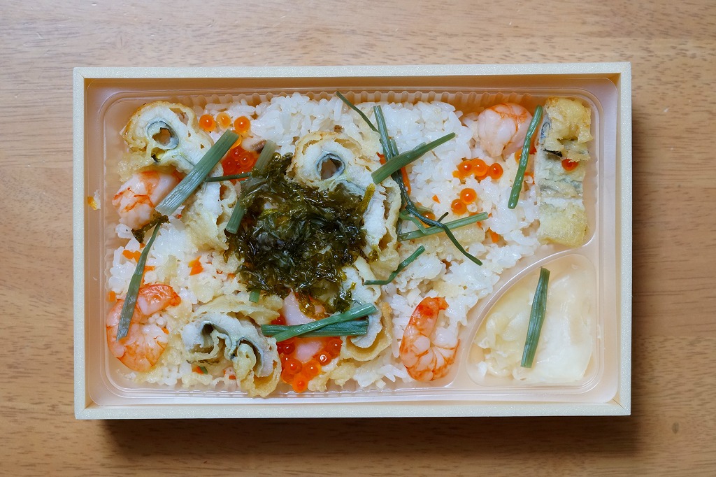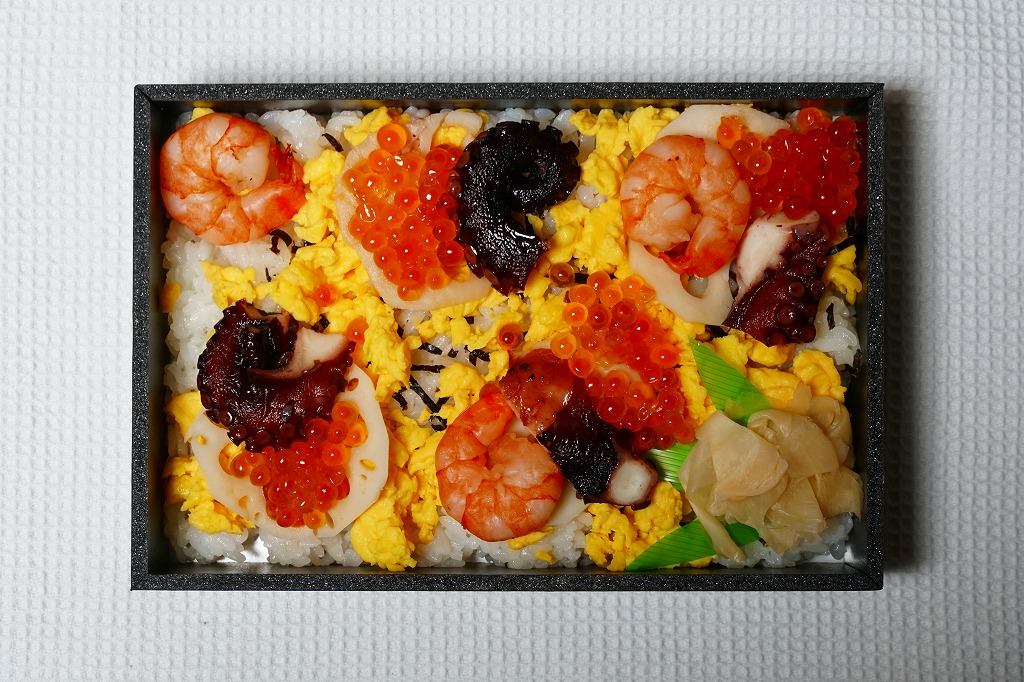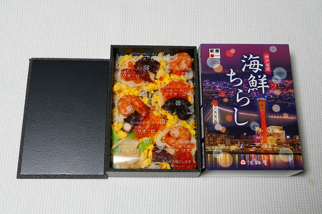 2019(平成31)年1月の京王百貨店の駅弁大会で輸送販売。2016(平成28)年12月に発売し、ルミナリエ期間中に売られる「神戸夜景弁当」の、名前とスリーブを変えて催事に持ってきた模様。黒い容器に酢飯を敷き、炒り卵、タコ、レンコン、イクラ、エビで覆い、ガリを添える。不思議に見える具の選定は、夜景の演出を目的にしたのだろうか。柔らかな風味が良好な印象に加え、4枚のレンコンそれぞれにタコとエビとイクラをていねいに載せており、実は具を散らしていないつくりもまた輝いていた。この駅弁大会以外で売られたかどうかは分からない。