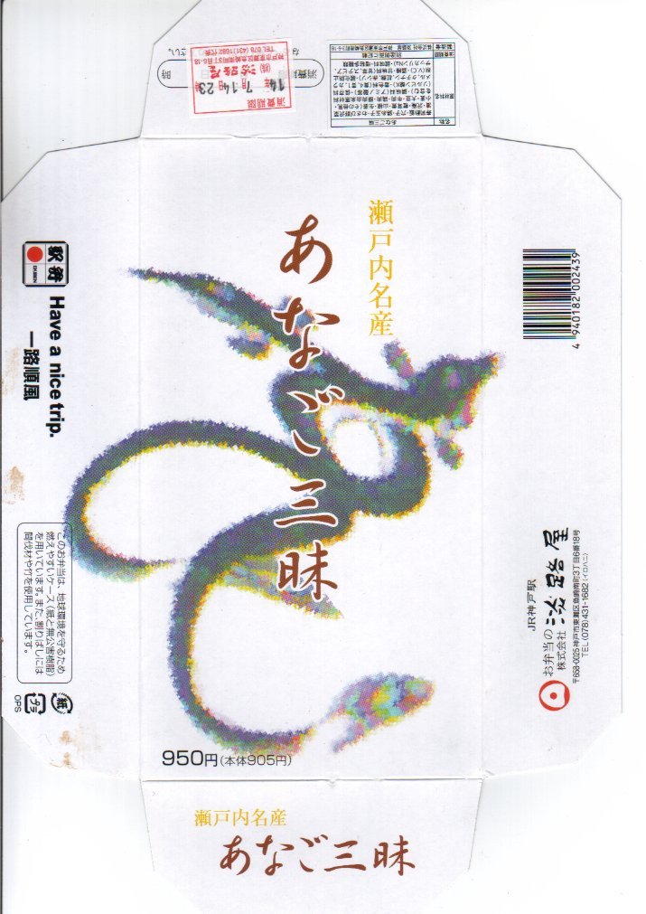2010(平成22)年5月2日に購入した、新神戸駅弁の掛紙。上記の2017年のものと、まったく同じ。製造委託記号も同じものが付いている。