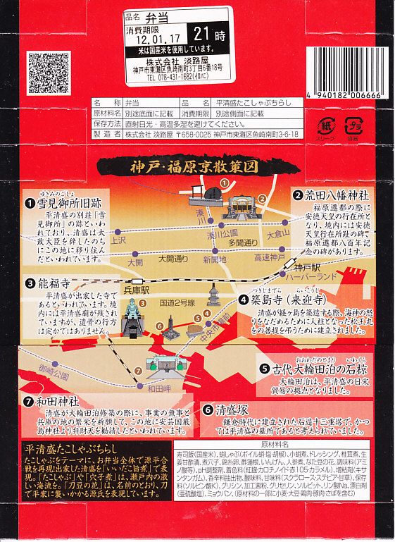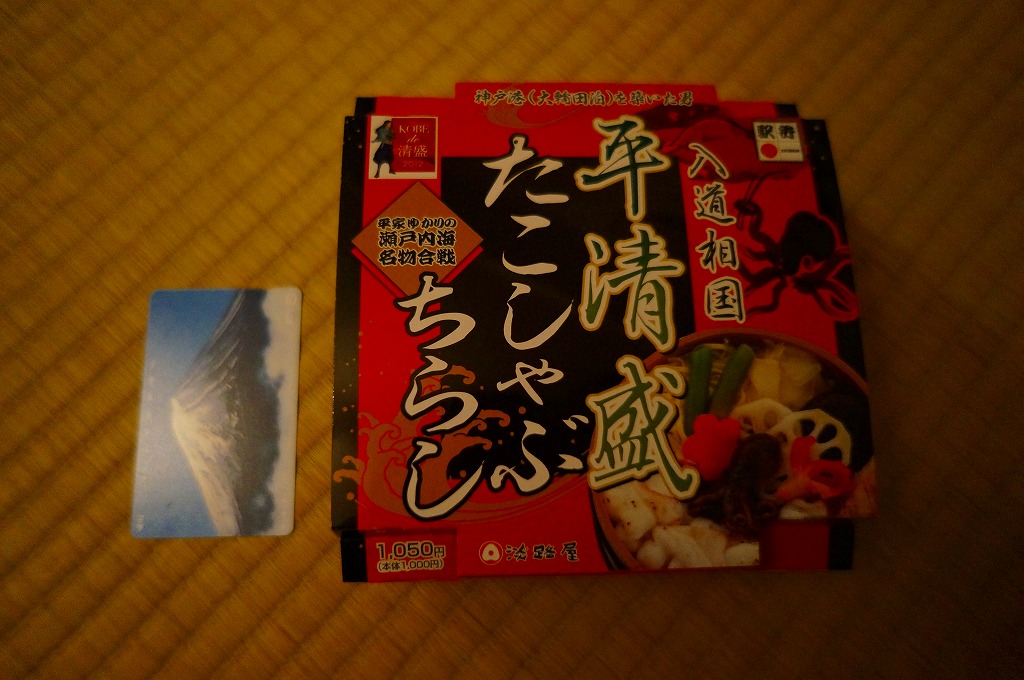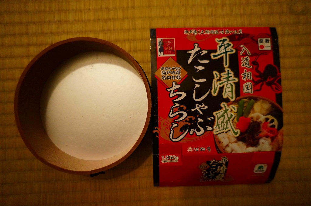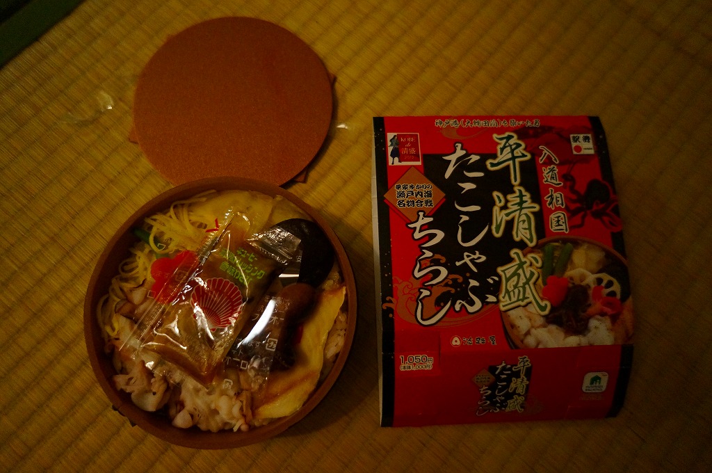 2012年のNHK大河ドラマ「平清盛」の放送に合わせて、2011年12月15日から2012年12月31日までの期間限定駅弁として発売。しかしその販売は半年程度で打ち切られた模様。丸い桶形の容器を、商品名と中身の写真などと、底面に神戸市内の平清盛関連箇所を描いたボール紙の枠にはめる。中身は酢飯の上にタコしゃぶ、イイダコ、アナゴ、シイタケなどを詰めるちらしずし。冷たい状態で食べても、タコの身に適度な柔らかさがあった。