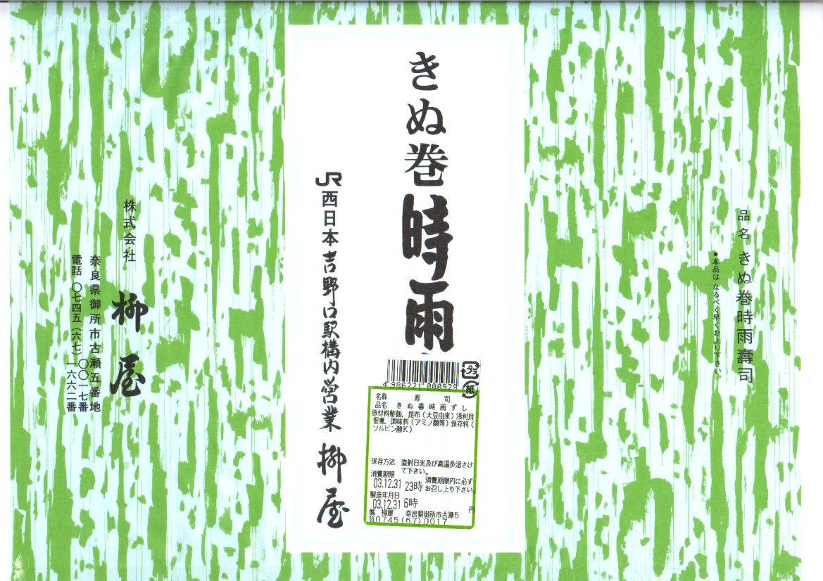 2018(平成30)年6月に吉野口駅のホーム上の売店を閉じ、この商品は他所や駅弁催事などに送られることもなく、2021年4月には吉野口駅近くの調製元と商品を一新して駅弁から決別した。柳屋の絹巻時雨寿司(表記を変えたらしい)は現存するかもしれないが、今後にこれが駅弁と紹介されることは、もうないと思う。