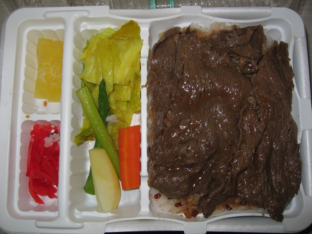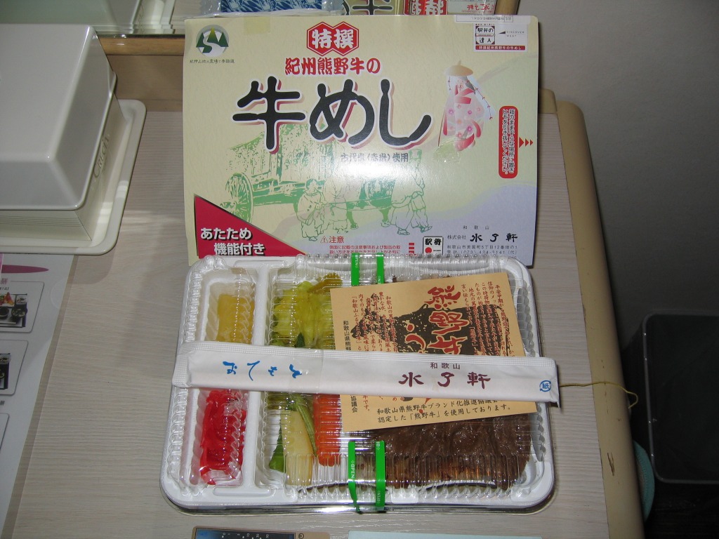 JR西日本の駅弁キャンペーン「駅弁の達人」の実施に伴い、2004(平成16)年5月1日に発売。加熱機能付き容器を使用した牛飯駅弁で、中身は古代米を加えた御飯の上に熊野牛すき焼き肉を載せて、キャベツ・アスパラ・人参・パイナップル・紅生姜を添えるもの。飯も肉も触感が楽しい牛飯に野菜炒めという内容はなかなか美味くて個性的。2004年度のJR西日本の駅弁キャンペーン「駅弁の達人」の対象駅弁。現在は販売されていない模様。
