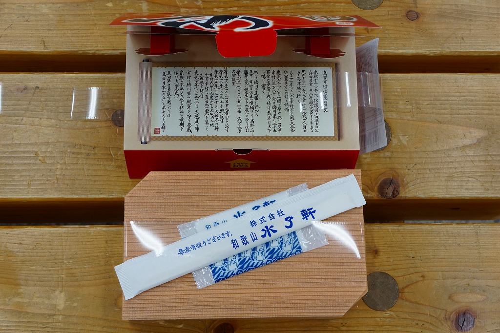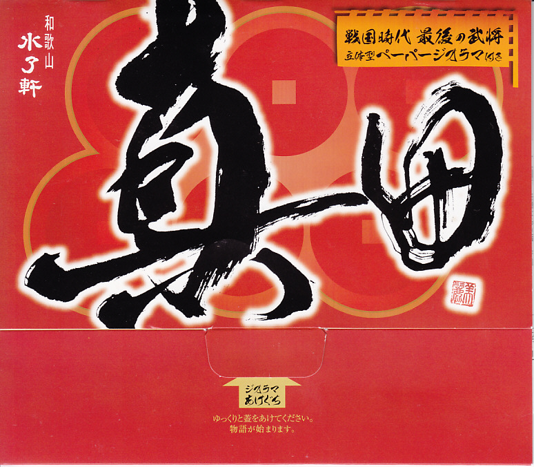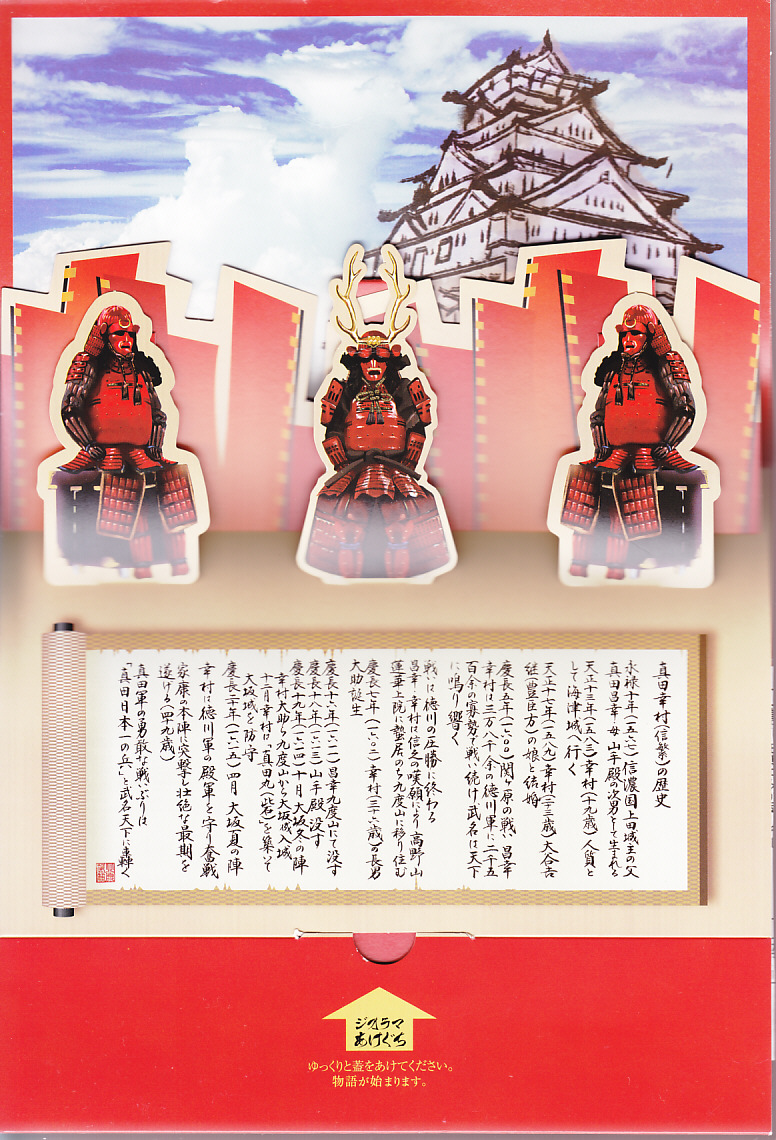 2016(平成28)年のNHK大河ドラマ「真田丸」の放送にちなんで、主にその放送期間中に発売か。値段は売店で900円と表示されたが、常に810円で販売された模様。「真田」と大きく書いた真っ赤なボール紙箱のふたを上げると、真田三代の甲冑が飛び出てきた。