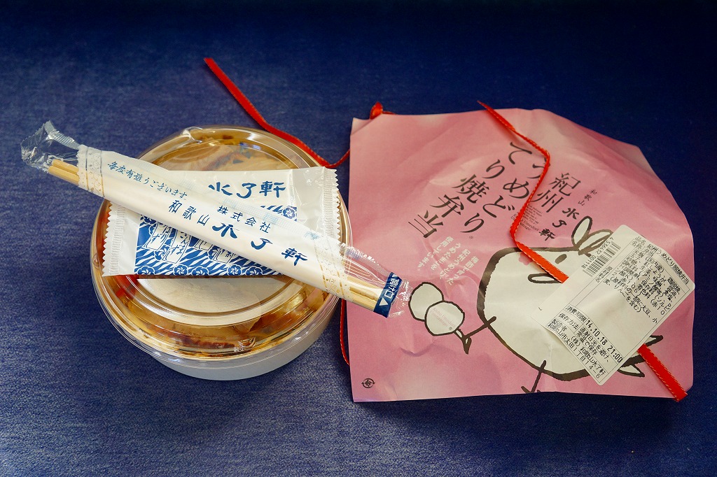 JR和歌山駅の4本のホームでは、駅ビルや表玄関に近い側から、柿の葉ずしたなか、阪和第一食堂、和歌山水了軒、キヨスク(弁当販売なし)と、それぞれ異なる業者が売店を出していた。こんな色分けのある駅は、とても珍しかった。これらの売店は2016(平成28)年1月までにすべて閉店。阪和第一食堂の商品は改札外のキヨスクなどに引き継がれず、この駅弁の現存は不詳。