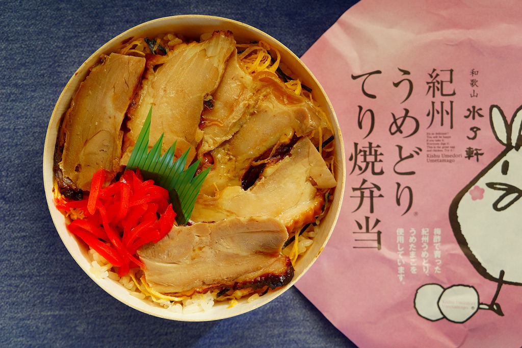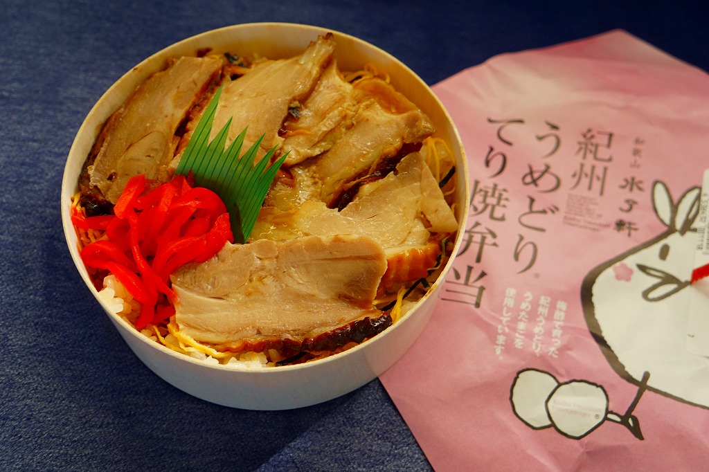 2011(平成23)年か、それ以前の発売か。丸い容器に白飯を詰め、海苔と錦糸卵で覆い、紀州うめどりのてり焼でさらに覆い、紅生姜を添える。どうも容器に決まりがないようで、ネット上を検索するといろんなものが出てくる。その前に収穫報告がほとんどない、幻の駅弁。サクサクとシンプルな鶏肉丼だった。2019年頃までの販売か。