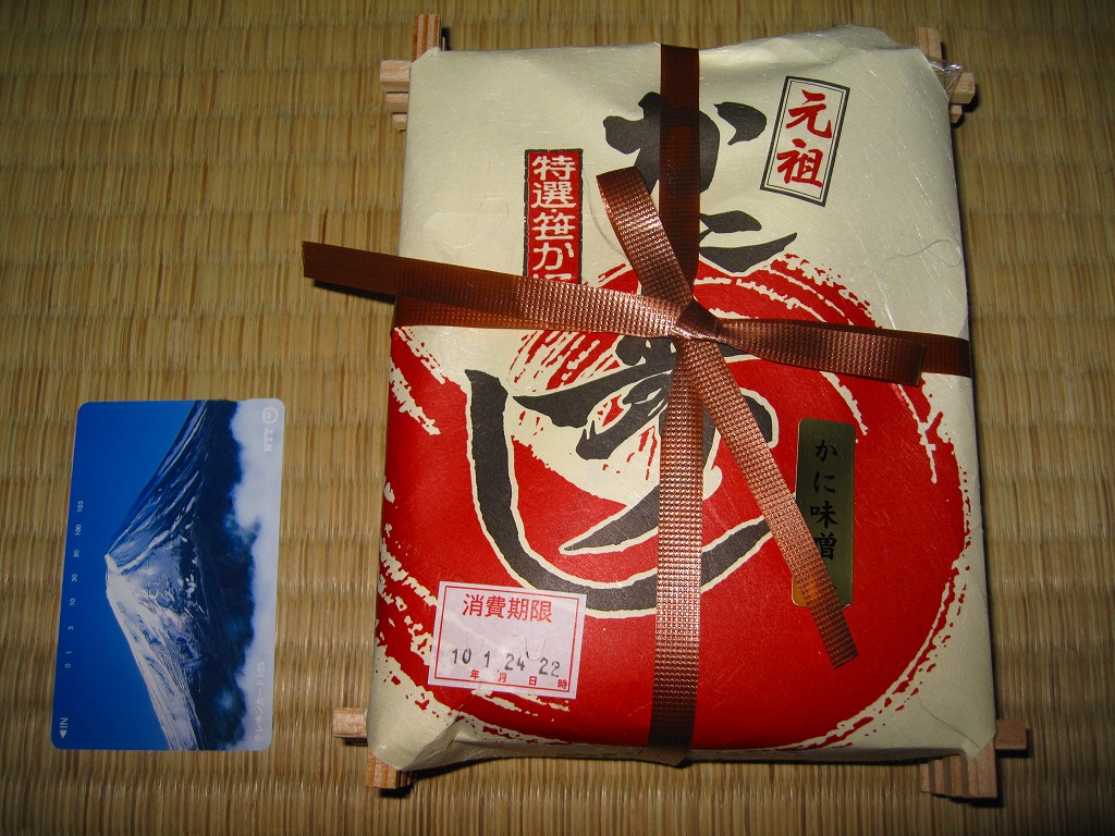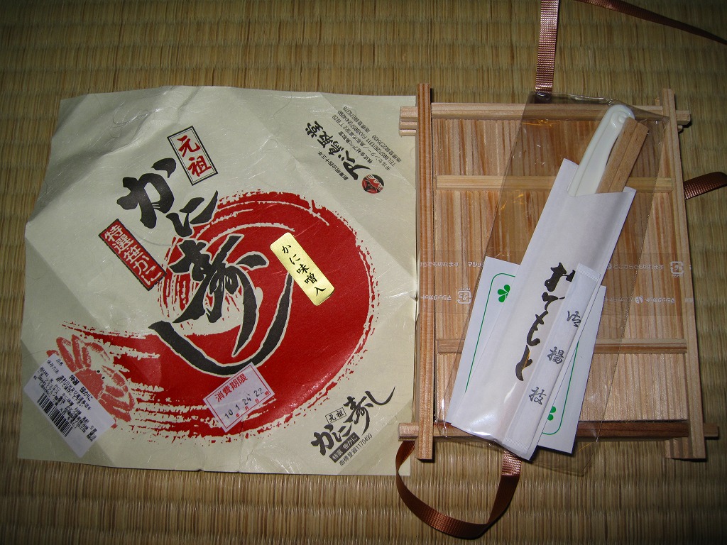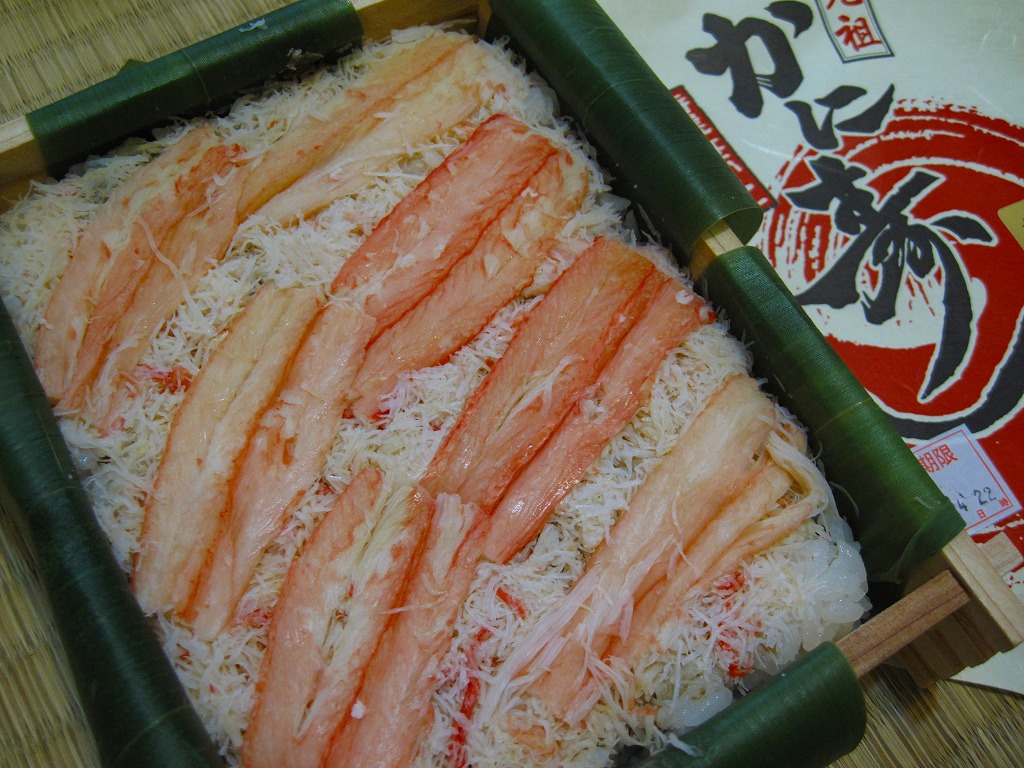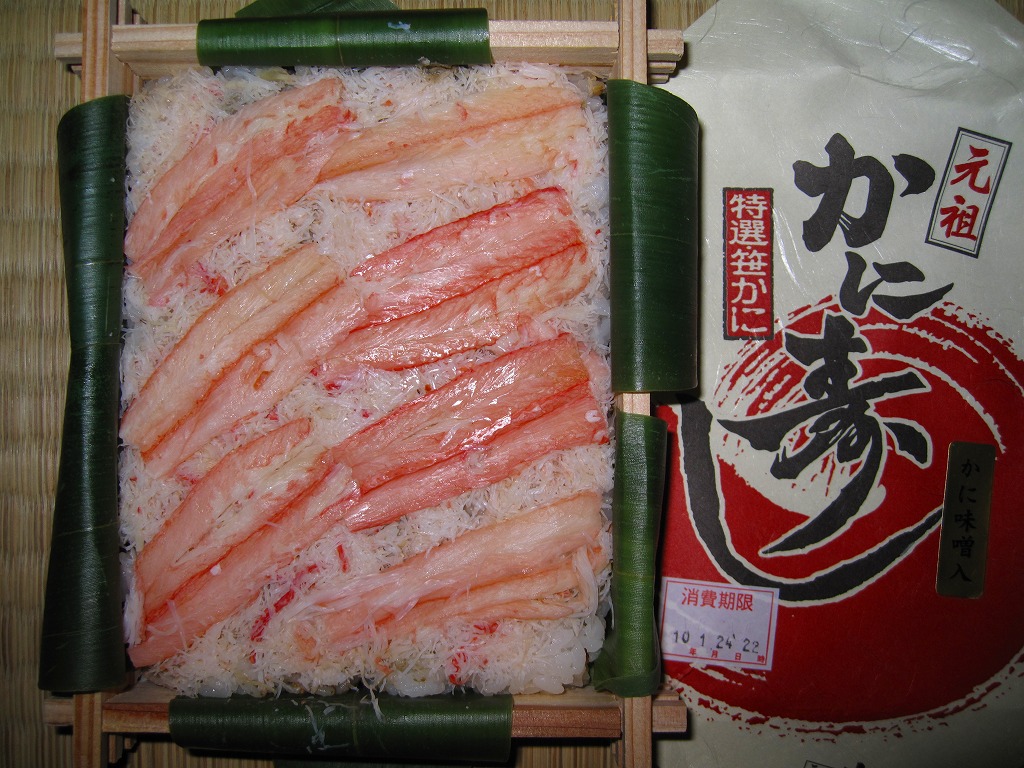地元でも親しまれる、人気の駅弁。駅弁大会などで遠隔地へ輸送された商品は、酢が強くてカニの風味を感じにくく、しかし現地で購入したらそんなことはなく、まるで別物のようなカニの光沢と風味にうっとりした。2004年度のJR西日本の駅弁キャンペーン「駅弁の達人」の対象駅弁。価格は2004年当時で920円、2010年時点で980円、2014年時点で1,010円、2016年時点で1,080円、2019年時点で1,200円、2020年時点で1,280円、2023年時点で1,480円。
