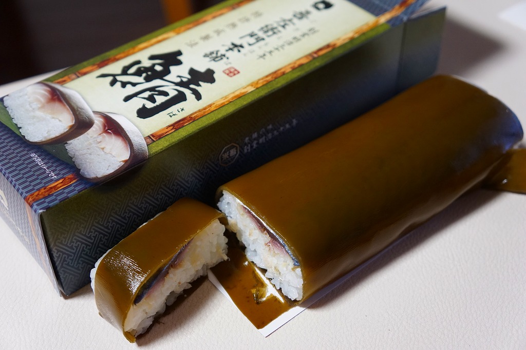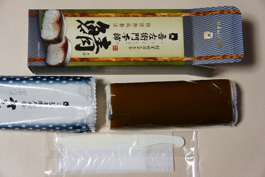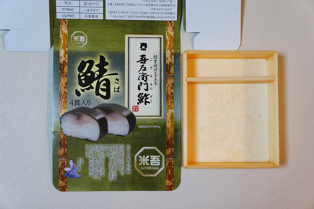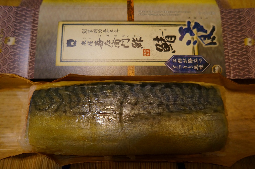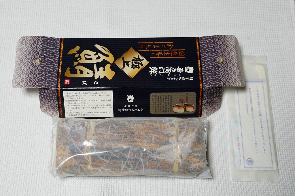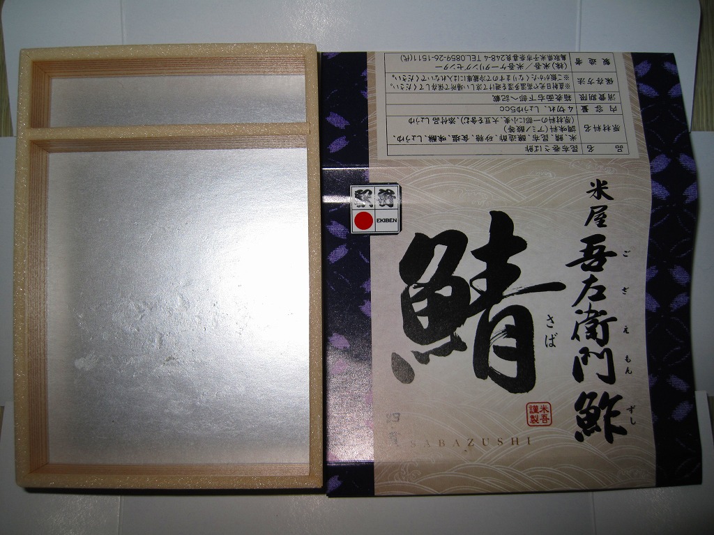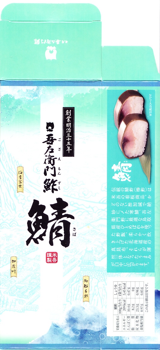 身は「吾左衛門鮓」のものを思うとだいぶ薄めで、サバは紙箱の見本写真ほど焼かれておらず、サバ寿司向け焼きサバと焼かないサバの中間くらいに感じたのは気のせいか。価格は2021年時点で1,450円、2023年時点で1,500円、2025年時点で1,700円。
