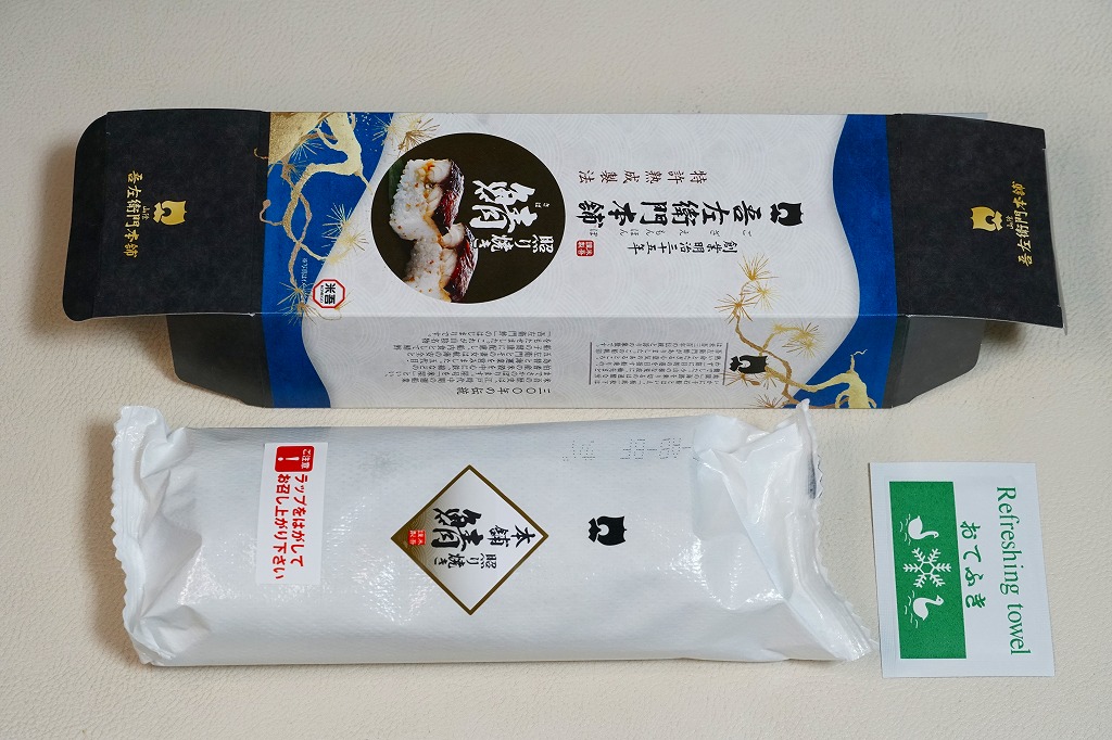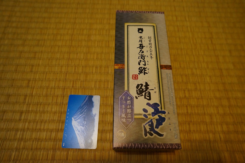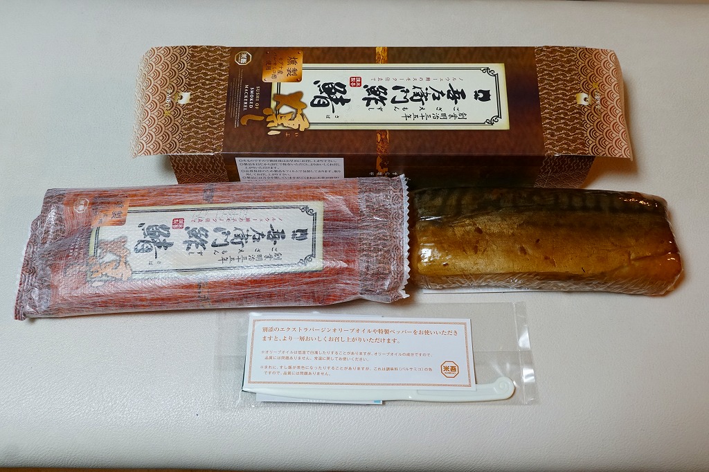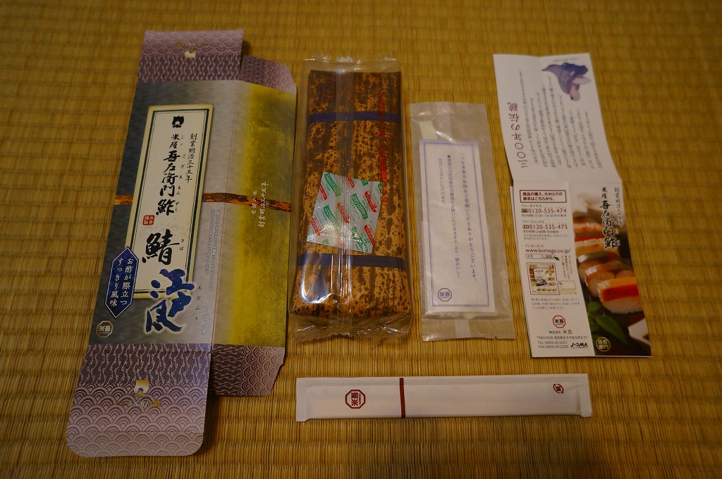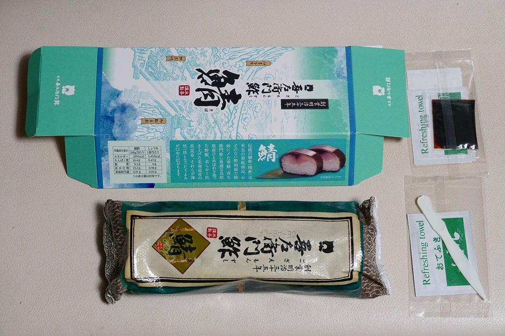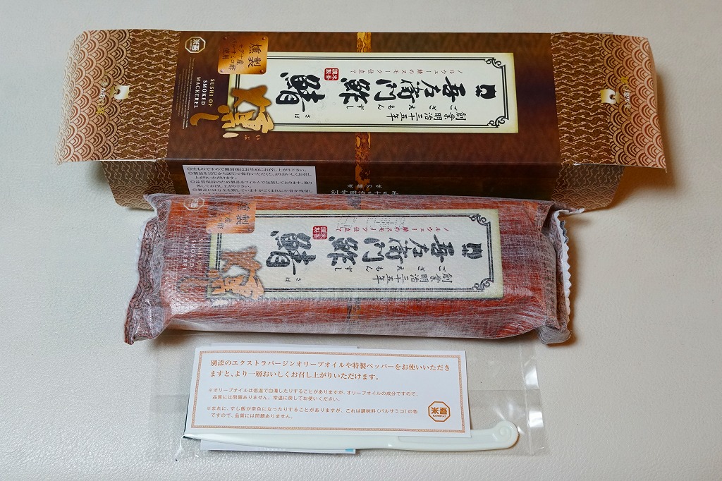 身は「吾左衛門鮓」のものを思うとだいぶ薄めで、サバは紙箱の見本写真ほど焼かれておらず、サバ寿司向け焼きサバと焼かないサバの中間くらいに感じたのは気のせいか。価格は2021年時点で1,450円、2023年時点で1,500円、2025年時点で1,700円。