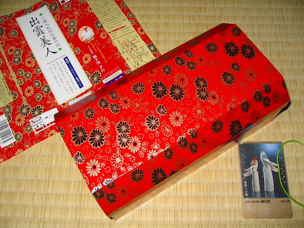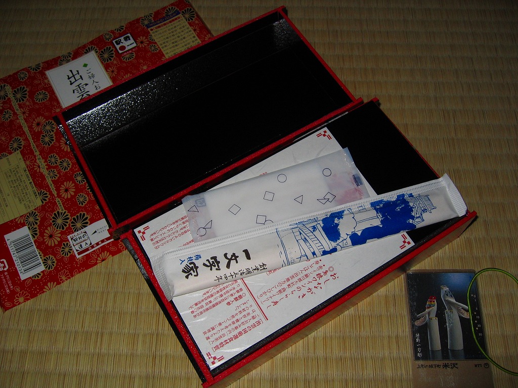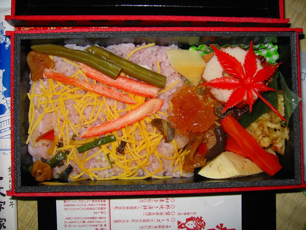 JR西日本の駅弁キャンペーン「駅弁の達人」の実施に伴い、2004(平成16)年5月1日に発売。江戸時代の長持ちをイメージしたという、けばけばしさの中に落ち着きもある柄の容器に、同じ柄の掛紙をかけてゴムでしばる。中身は、島根ワイナリーの赤ワインで薄紫色に染めた酢飯を敷き、木次のチーズ、八束の朝鮮ニンジン天などが入るちらしずし。
