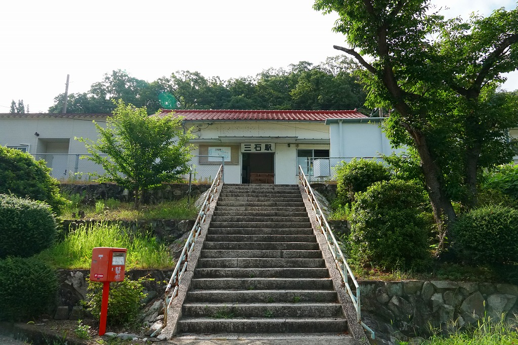 岡山駅から山陽本線の電車で約45分。備前市は岡山県の東側に位置する、人口約3万人の市。内陸では備前焼や耐火煉瓦といった焼き物が生産され、海沿いではカキ養殖などの漁業が知られる。山陽本線で岡山県の最東端となるこの駅では、当時市販の時刻表によると1896年から駅弁が売られ、戦前昭和時代まで構内営業者がいた。1890(明治23)年12月1日開業、岡山県備前市三石。