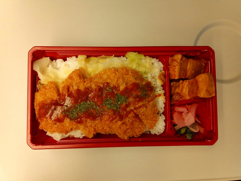 秋冬の駅弁大会シーズンに向けた、2020(令和2)年秋の新商品か。長い名前が中身を表現するとおり、白飯をサーロインのカツのデミグラスソースかけとキャベツのコンソメ煮で覆い、玉子焼とソースと大根漬と青菜漬を添える。デミグラスソースに味と実物でニンニクがたっぷり含まれるようで、ふたを開けてから食べ終わるまで強烈なニンニク臭が漂い続けたのも、またプレミアムか。2022年7月限りで終売。