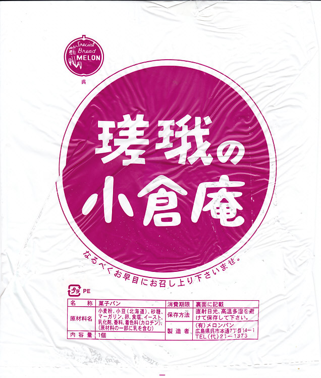 これは駅弁ではなく、そもそも駅で買った商品でもないが、地元で親しまれているパンということで、ここに収蔵。大きさは並で重さは特上のあんパンがひとつ、不透明の白い袋に収まる。通常のあんパンは内部に空洞があるが、このあんパンは生地とつぶあんとの間に一切の隙間がない。表面が蜜でべたつくほど甘く、生地はふっくらしっとり。その分だけ値段は張るが、忘れられない味。1936(昭和11)年創業という製造者の会社名のユニークさが、ネット上で話題になっている。