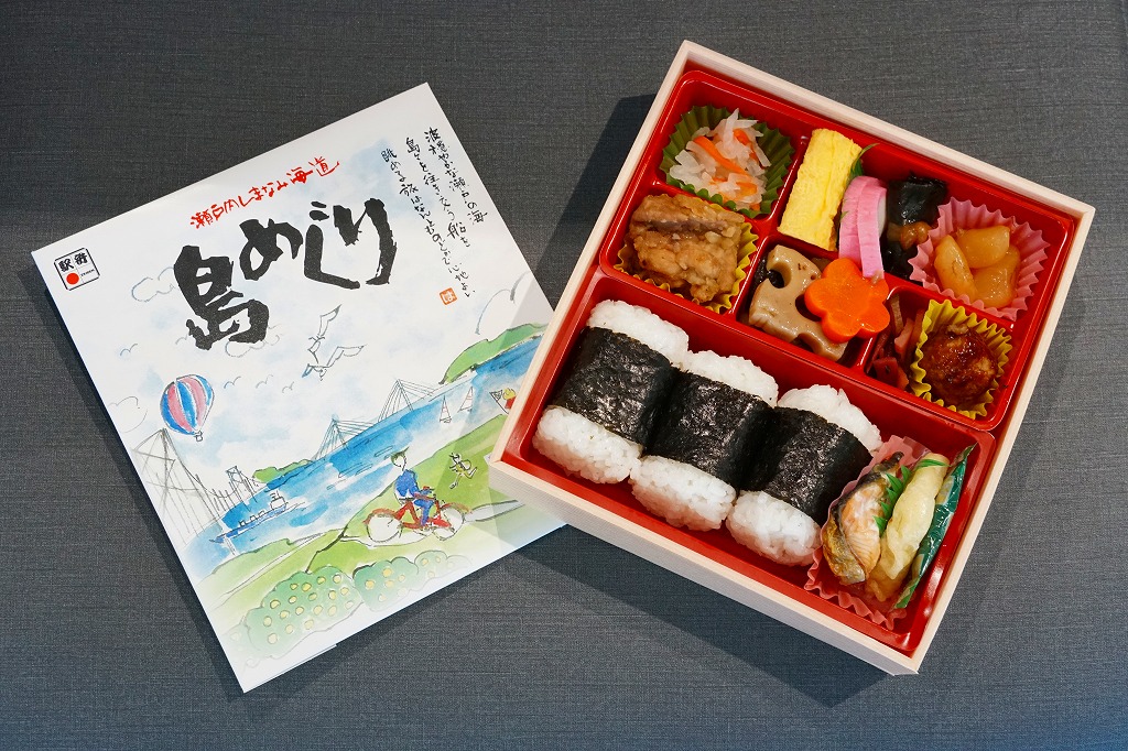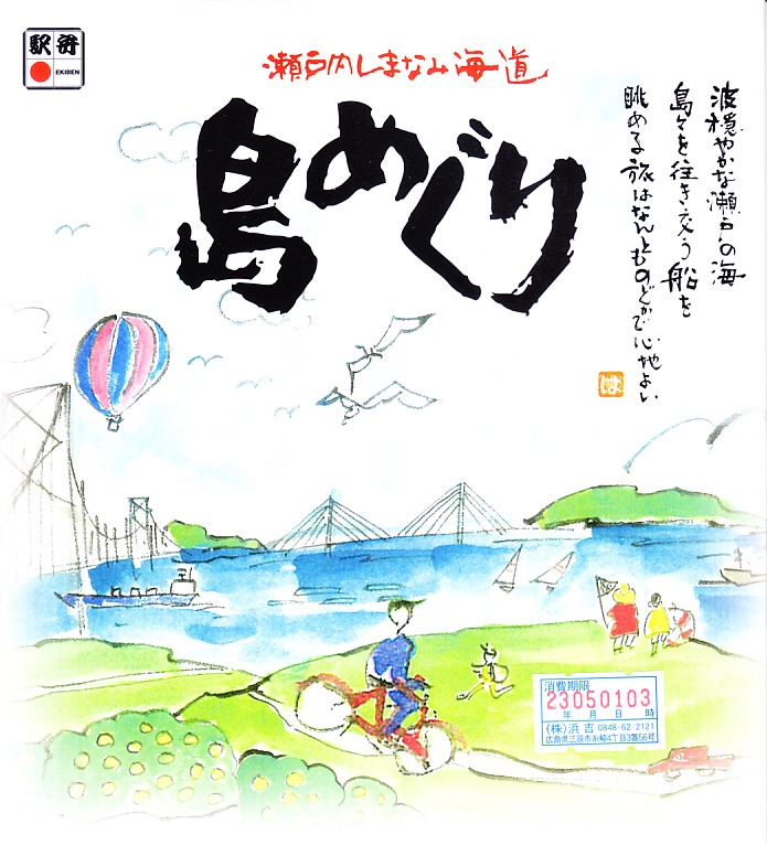 2000年代までに福山駅で発売か。あるいは1999年のしまなみ海道の開通に合わせて発売か。当時の福山駅の駅弁屋である鞆甚の駅弁の名前が、2003年に現在の浜吉の駅弁に引き継がれた。ふたには海と島と長大橋と自転車に船舶や柑橘などが描かれ、本州と四国を結ぶ自動車道、西瀬戸自動車道、本州四国連絡道路尾道・今治ルート、通称「しまなみ海道(かいどう)」の特徴をよく表している。2010年代にはしまなみ海道のイラストマップを載せていた。