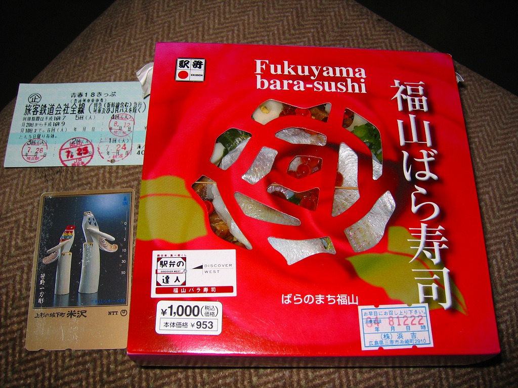 調製元は、2003年に福山駅へ進出した、三原駅の駅弁屋。三原より福山のほうが駅弁が売れるのか、駅弁の種類や新製品投入状況を見るとこちらがメインステージになっている模様。2004年度のJR西日本の駅弁キャンペーン「駅弁の達人」の対象駅弁。価格は2004年の購入時で1,100円、2016年時点で1,150円。2021年までの販売か。