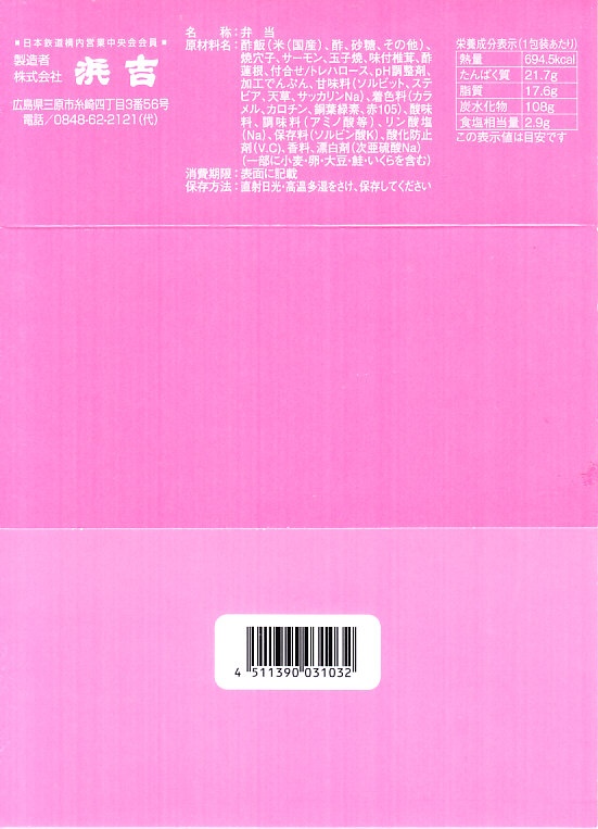 JR西日本管内における九州新幹線開業記念弁当、山陽新幹線との相互直通運転開始記念弁当の7社12種のうちひとつとして、2011(平成23)年3月1日に福山駅にて1,000円で発売。発売当時は正方形の容器に穴子飯やタコ煮や牛肉の旨煮に、鯛の塩焼やままかりなど瀬戸内の山海の食材を詰め、九州新幹線直通列車さくら・みずほ号の写真を使うサクラ色の掛紙をかけて販売した。