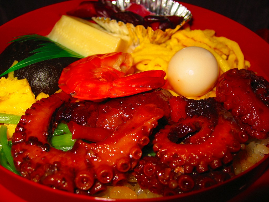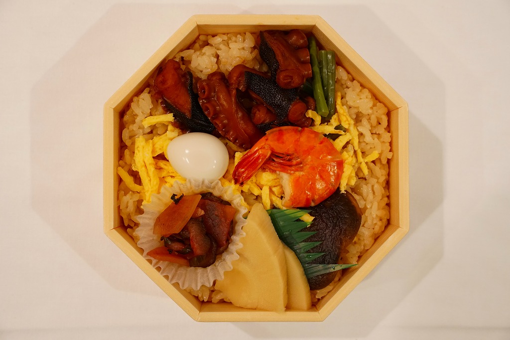 正八角形の容器にタコの炊込飯を詰め、タコ旨煮、タケノコ煮、えび、うずら卵、しいたけ、錦糸卵、漬物などで覆う。この内容もまた、半世紀の間変わらないもの。タコを味や香りよりむしろ量で感じさせる、食べて力強いタコ駅弁。価格は2004年時点で900円、2008年6月から950円、2014年4月の消費税率改定で980円、2018年時点で1,030円、2022年時点で1,080円、2023年5月から1,150円。