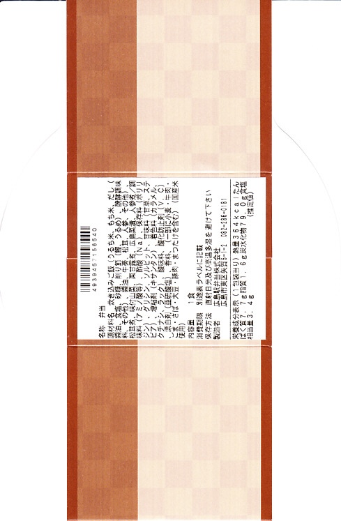 購入時には小判型容器にまきすを巻いて掛紙をかけていたが、2004年時点で長方形の容器に掛紙を兼ねたボール紙のふたをしている模様。中身は麦飯の上にじゃこの生姜風味甘辛煮に錦糸卵と海老そぼろをストライプ状に敷き詰め、おかずを添えるもの。味はかなり濃いめ。