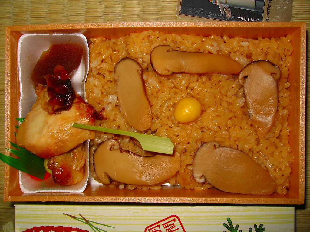 国産の松茸が豊作になったという話は聞かないが、近年は輸入マツタケ松茸が中国や北朝鮮ではなく北欧や北米から入ってくるようになっており、これで千円の駅弁でも分量を出せるようになったのだろうか。その他の具はなぜか、不思議な甘さを持っていた。おそらくこの駅弁も、現存しない模様。